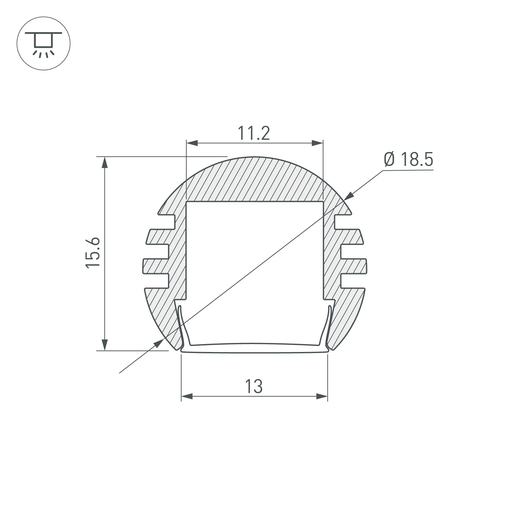 Поставка под заказ от 50 м. Алюминиевый анодированный закруглённый профиль для светодиодных лент и линеек. Габаритные размеры профиля (L×W×H): 2000x18,5x15,6 мм. Габаритные размеры профиля с экраном (L×D): 2000xD18,5 мм. Ширина площадки для ленты 11,2 мм. Экраны, заглушки и другие аксессуары приобретаются отдельно. Цена за 1 метр.