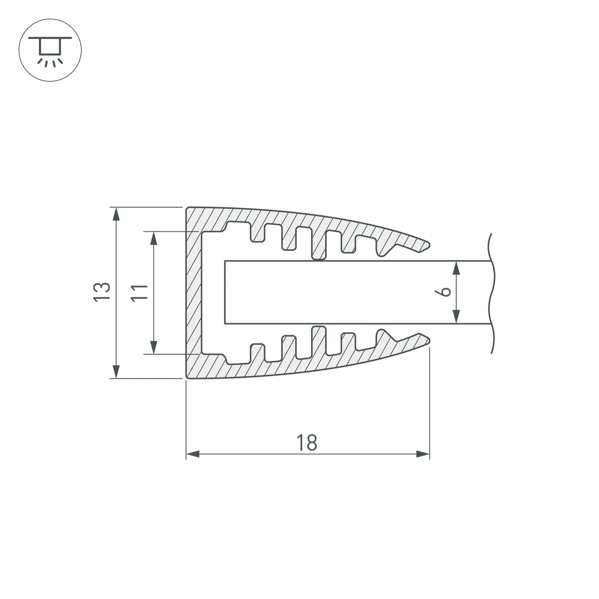 Алюминиевый анодированный профиль для освещения краев стекла толщиной 6 мм. Подложка для ленты в комплекте. Габаритные размеры (L×W×H): 2000x12,5x18 мм. Для лент шириной до 8 мм. Заглушки и другие аксессуары приобретаются отдельно. Цена за 1 метр.