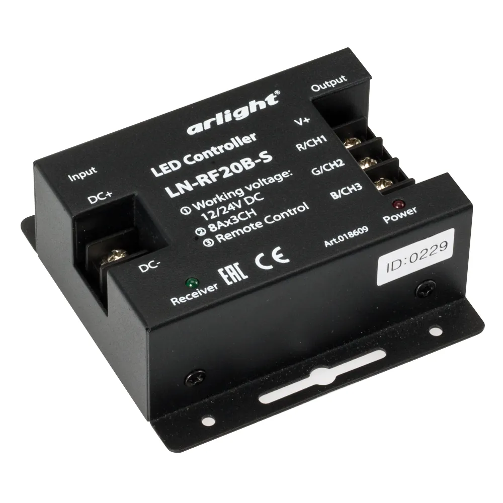 В магазине Арлед Маркет Вы можете купить "Контроллер LN-RF20B-S (12-24V, 288-576W, ПДУ 20кн) (Arlight, IP20 Металл, 1 год)"