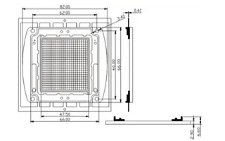 Мощный светодиод, размер 82×66×6,6 мм. Чипы USA Bridgelux 45mil. Цвет свечения белый (3000-3200 К). Угол 120°. Световой поток 30000-33000 лм при If= 7000 мА, P=300 Вт. VF=45-50 В.