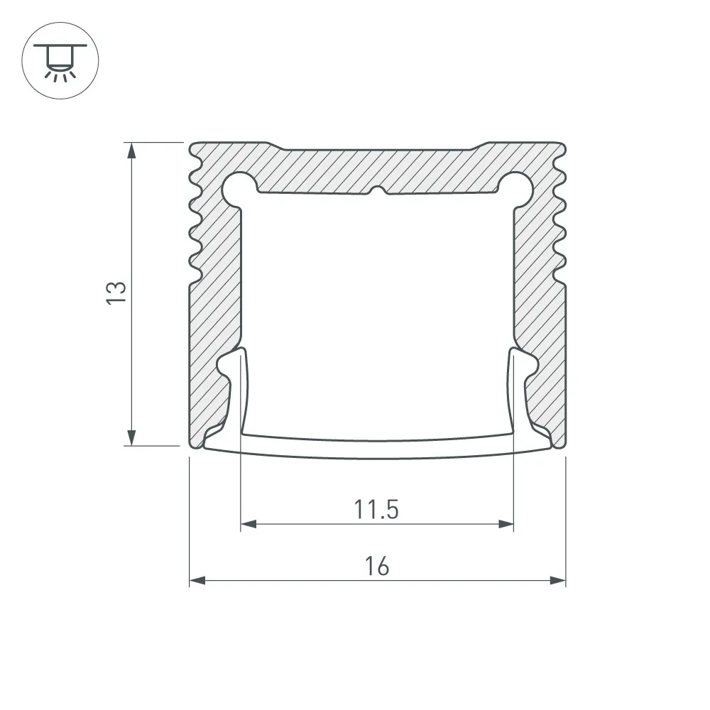 Профиль 16х13 мм. Анодированный алюминий. Длина 2000мм. Цена за 1м. Экраны, заглушки отдельно. Для светодиодных лент шириной до 11мм. Заменяется на арт.023718