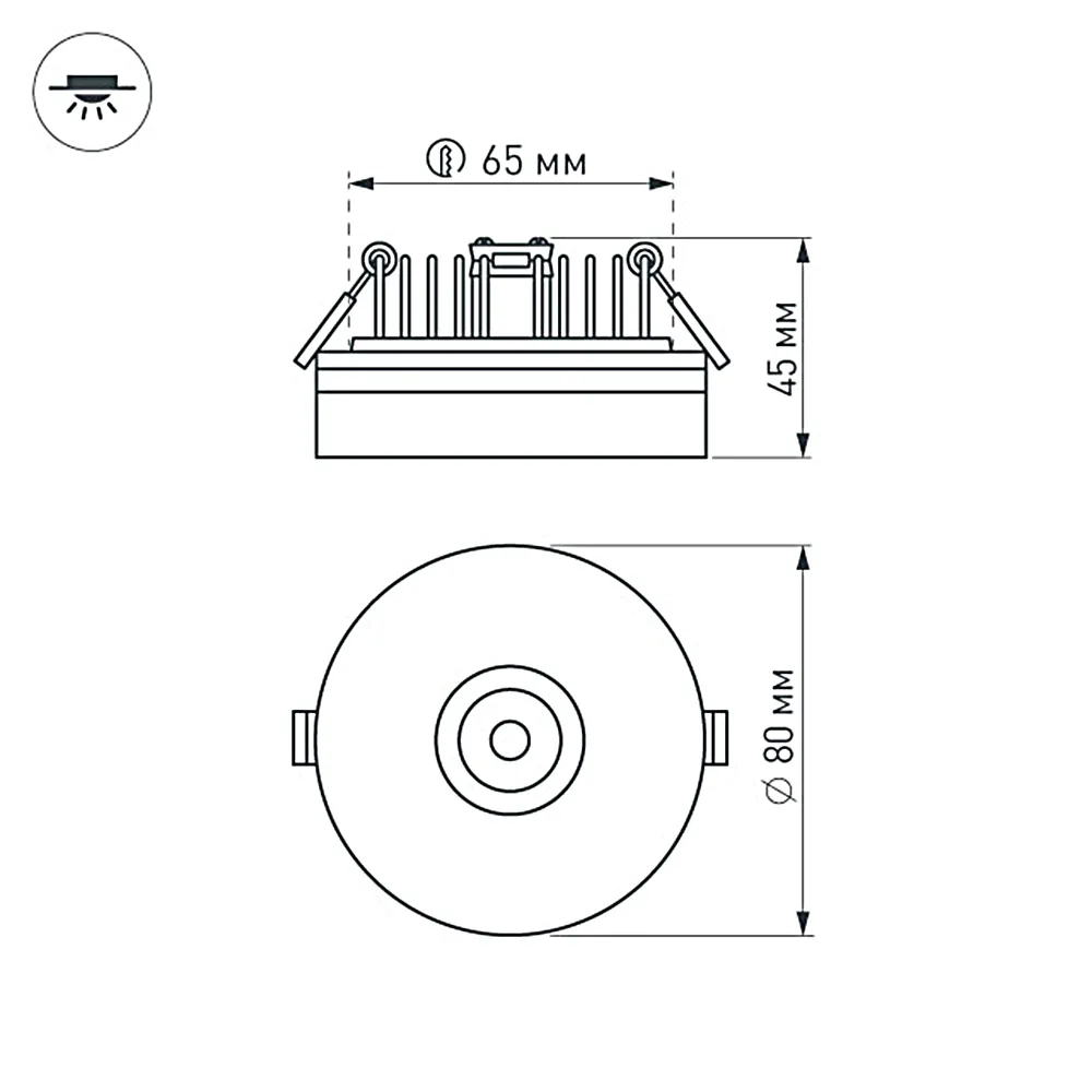 Встраиваемый светильник цилиндр, направленное + рассеянное свечение, 2x3Вт, корпус белый алюминий + глянцевый акрил. Цвет ДНЕВНОЙ БЕЛЫЙ 4000K, св.поток 480лм, CRI(Ra)>80, угол 24° + 120°. Размер Ф80x45мм, установка в отверстие Ф65мм. Питание 110-240VAC, 6Вт, 300mA 18-22V, драйвер в комплекте.