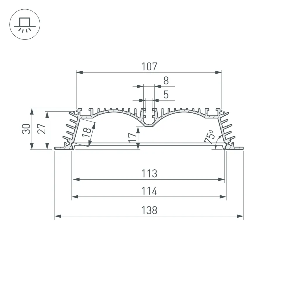 Поставка под заказ от 1 компл. Комплект с экраном. Алюминиевый профиль для светодиодных лент и линеек. Установка лент/линеек 18мм на 2 боковые стороны. Ширина световой полосы 112мм. Габаритные размеры (L×W×H): 2000x138x30 мм. Ширина площадки для ленты 18 мм. Аксессуары приобретаются отдельно. Цена за комплект. Минимальный заказ 1 комплект.