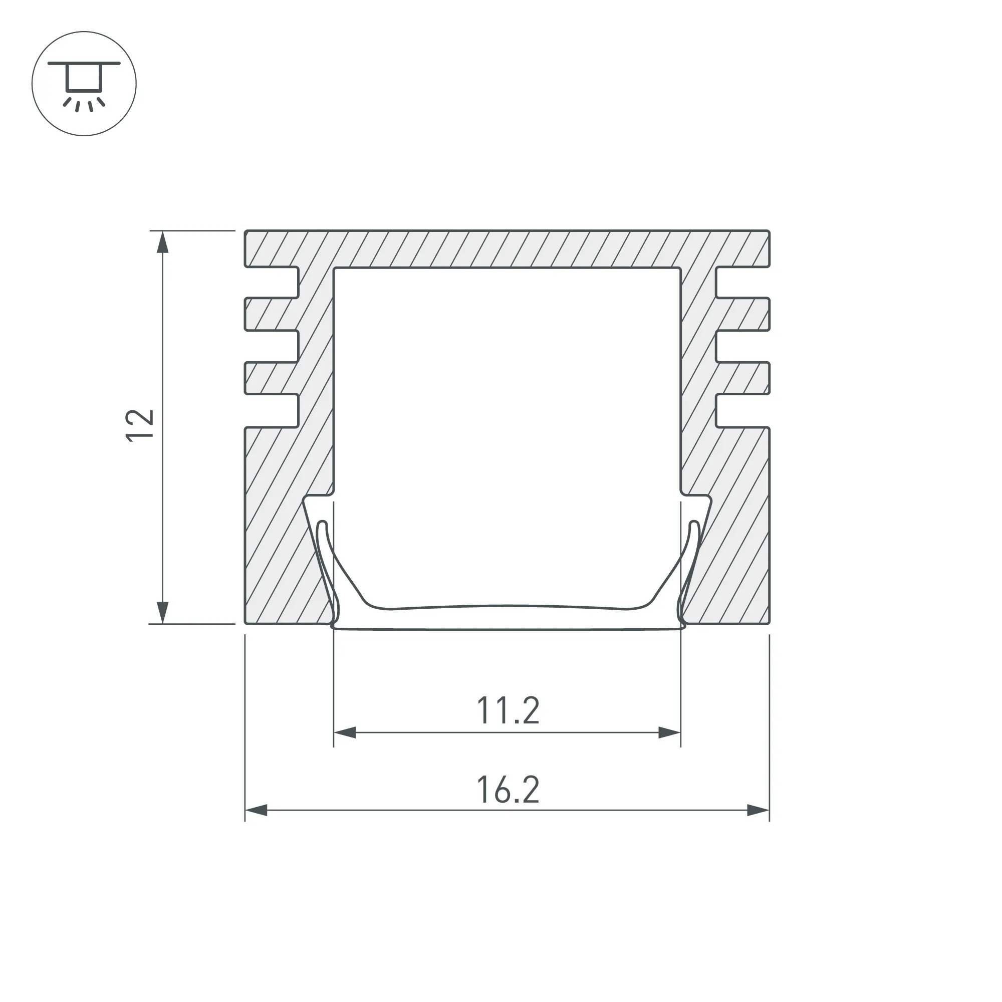 Алюминиевый анодированный профиль для светодиодных лент и линеек. Анодированный в чёрный цвет. Габаритные размеры (L×W×H): 3000x16,2x12 мм. Ширина площадки для ленты 11,2 мм. Экраны, заглушки и другие аксессуары приобретаются отдельно. Цена за 1 метр.