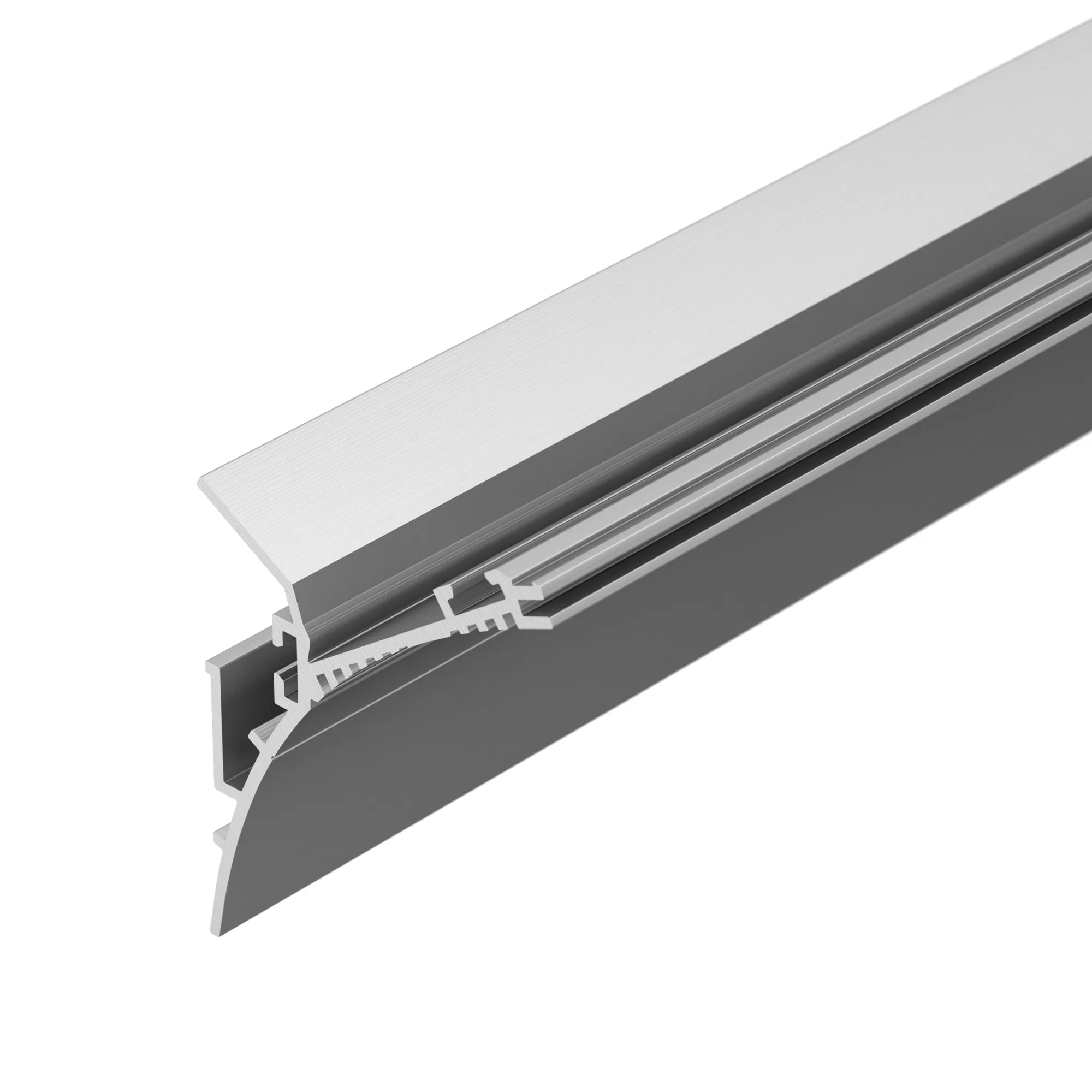 Под заказ от 20 м. Алюминиевый профиль для подсветки стен и потолков. Штукатурка наносится сверху, делая профиль невидимым. Состоит из двух частей - основания и профиля для светодиодной ленты. Габаритные размеры (L×W×H): 2000x38,1x19 мм. Ширина площадки для ленты 11,2 мм. Экраны, заглушки и другие аксессуары приобретаются отдельно. Цена за 1 метр.