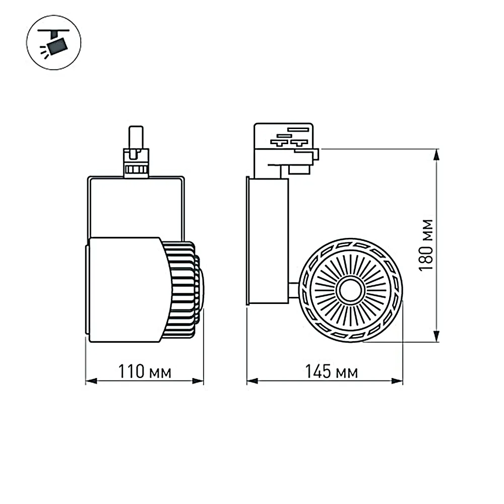 Подвесной светильник для треков/шин 4 провода. Светодиод 45W, цвет БЕЛЫЙ 5000K, св.поток 4000-4400лм, угол 24°. Черный корпус. Мощность 45Вт, питание AC220-240V. Максимальные габариты LxWxH: 145x110x180мм