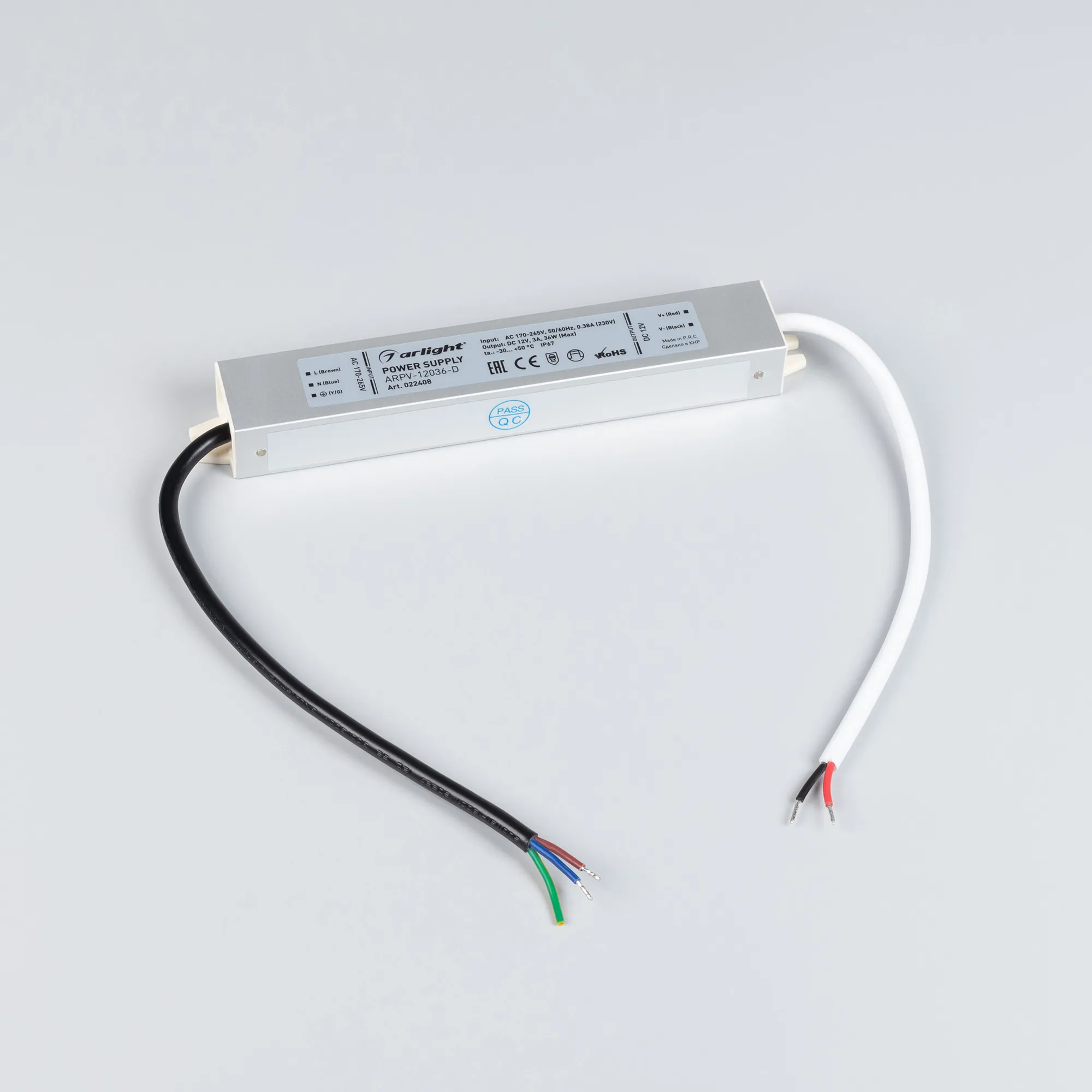 Источник напряжения с гальванической развязкой для светодиодных изделий. Входное напряжение 170-265 VAC. Выходные параметры: 12 В, 3 А, 36 Вт. Герметичный алюминиевый корпус IP 67. Рабочая температура -30…+50C⁰. Габаритные размеры длина 182 мм, ширина 30 мм, высота 20 мм. Гарантийный срок 3 года.