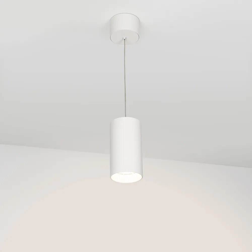 Подвесной светильник 15Вт, белый круглый корпус, белая вставка, металл. Цвет ТЕПЛЫЙ БЕЛЫЙ 3000K, св.поток 1100лм, CRI(Ra)>80, угол 40°. Размер Ø85x155мм. Встроенный драйвер PRI:220-240VAC, SEC:DC 500mA 23-36V 15Вт.