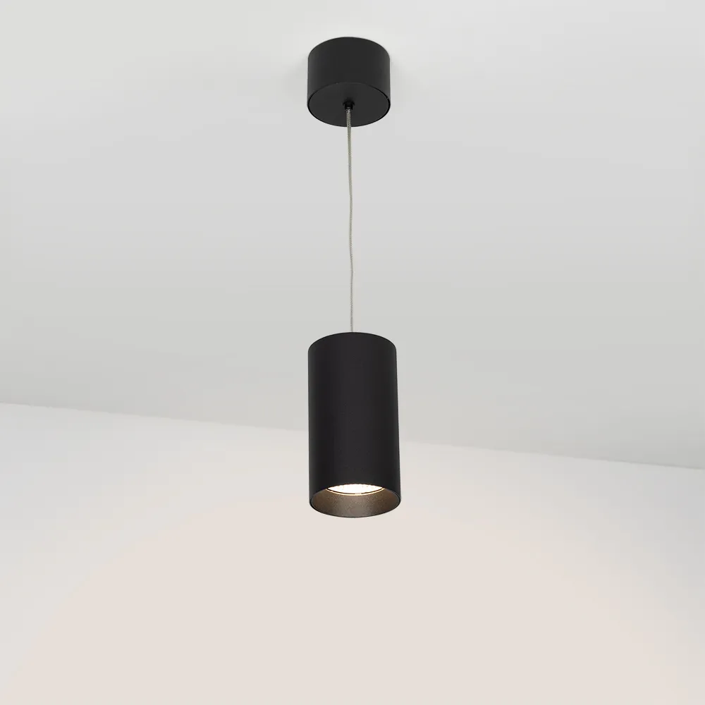 Подвесной светильник 15Вт, черный круглый корпус, черная вставка, металл. Цвет ТЕПЛЫЙ БЕЛЫЙ 3000K, св.поток 1100лм, CRI(Ra)>80, угол 40°. Размер Ø85x155мм. Встроенный драйвер PRI:220-240VAC, SEC:DC 350mA 23-36V 15Вт.