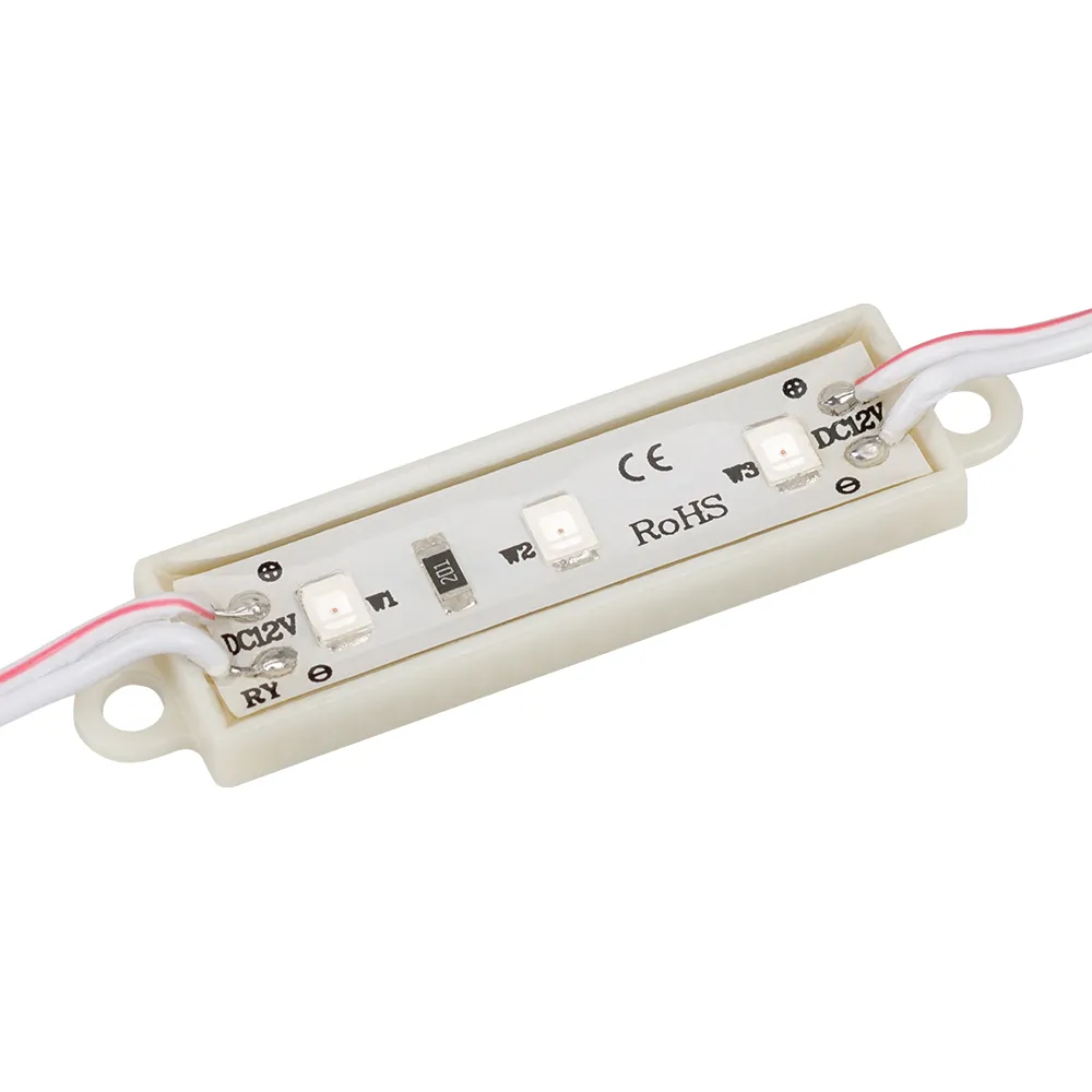 Модуль IP65, копус PVC, 3 светодиода smd 2835. Цвет Желтый, угол 120°. На проводе 20шт, между модулями --мм. Питание 12В, мощность 0.3W. Габариты LxHxW: 36х12х4 мм.