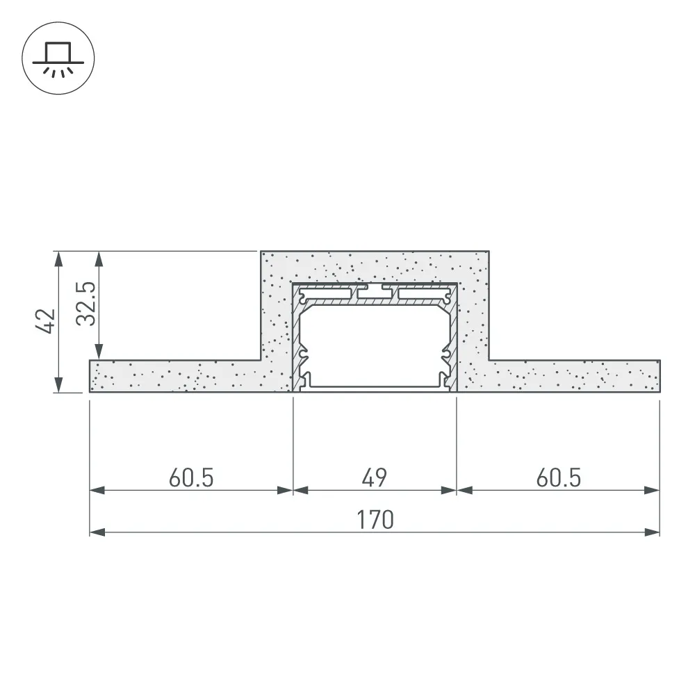 Гипсокартонный модуль серии LINE со встроенным алюминиевым профилем SL-LINE-4932. Внешний вид - прямая линия света шириной 45 мм в плоскости. Размеры модуля: ширина -170 мм, высота – 44.5 мм, длина - 2000 мм. Ширина площадки для светодиодной ленты: 38 мм. Толщина гипсокартона: 9,5 мм. Матовый экран в комплекте. Поставляется не зашпаклеванным. Цена за 1 м.