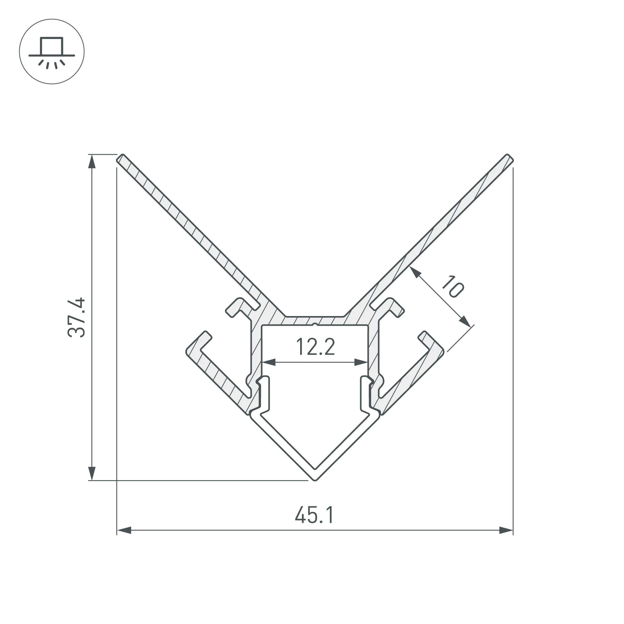 Алюминиевый анодированный угловой профиль для светодиодных лент и линеек, под строительную отделку или плитку. Фиксируется при помощи строительной смеси. Декоративная контурная подсветка внешних углов стен и конструкций. Габаритные размеры (L×W×H): 2000x45,1x30,3 мм. Ширина площадки для ленты 12 мм. Экраны, заглушки и другие аксессуары приобретаются отдельно. Цена за 1 метр.