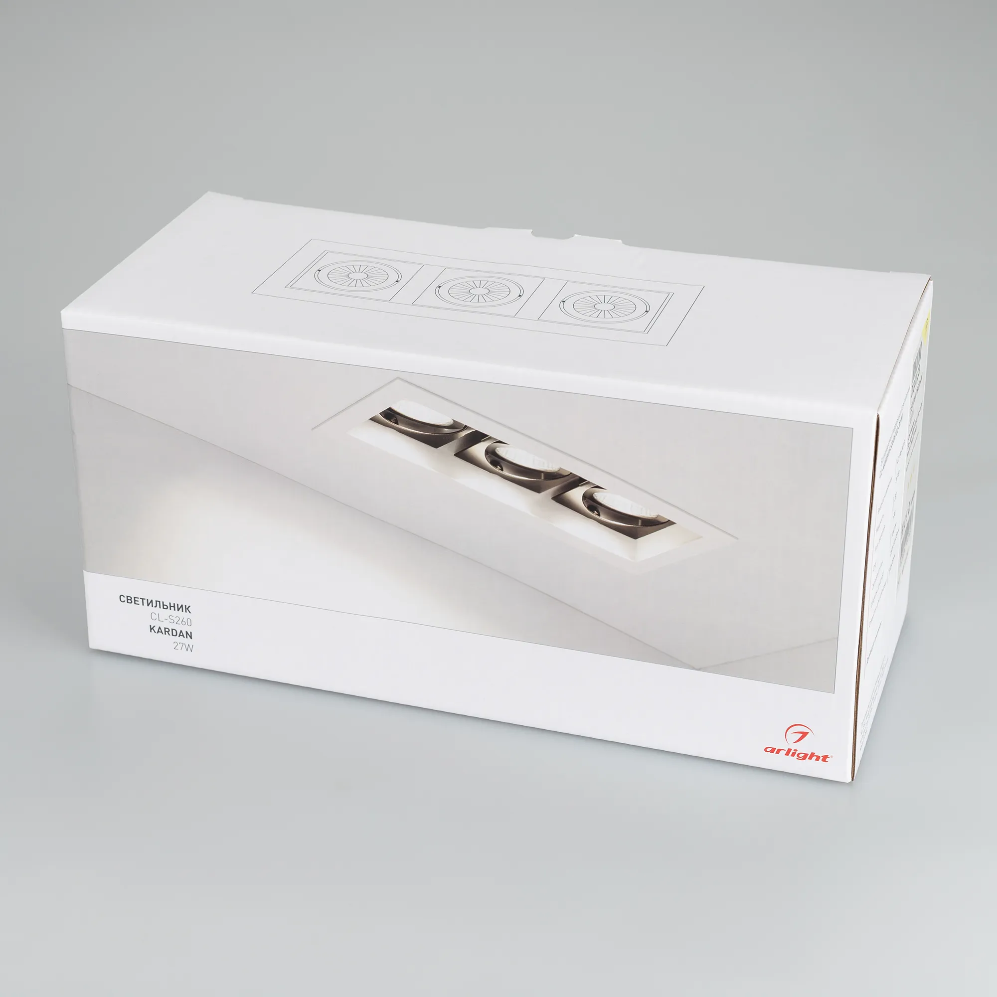 В магазине Арлед Маркет Вы можете купить "Светильник CL-KARDAN-S260x102-3x9W Warm (WH, 38 deg) (Arlight, IP20 Металл, 3 года)"