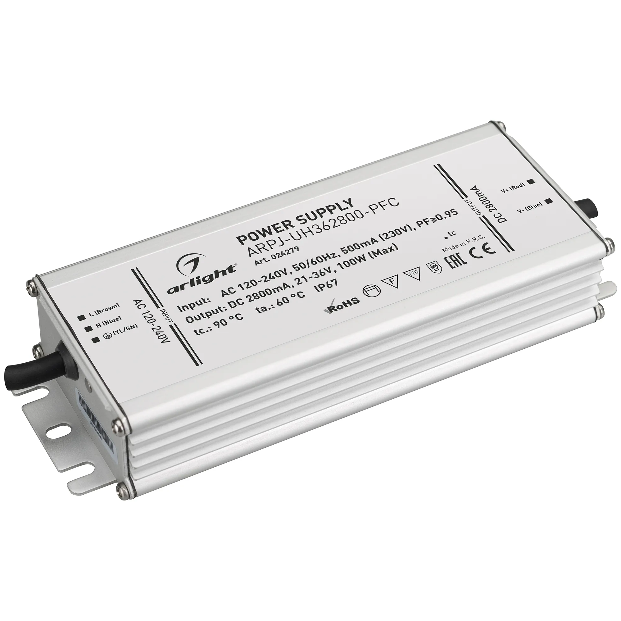 В магазине Арлед Маркет Вы можете купить "Блок питания ARPJ-UH362800-PFC (100W, 2.8A) (Arlight, IP67 Металл, 7 лет)"