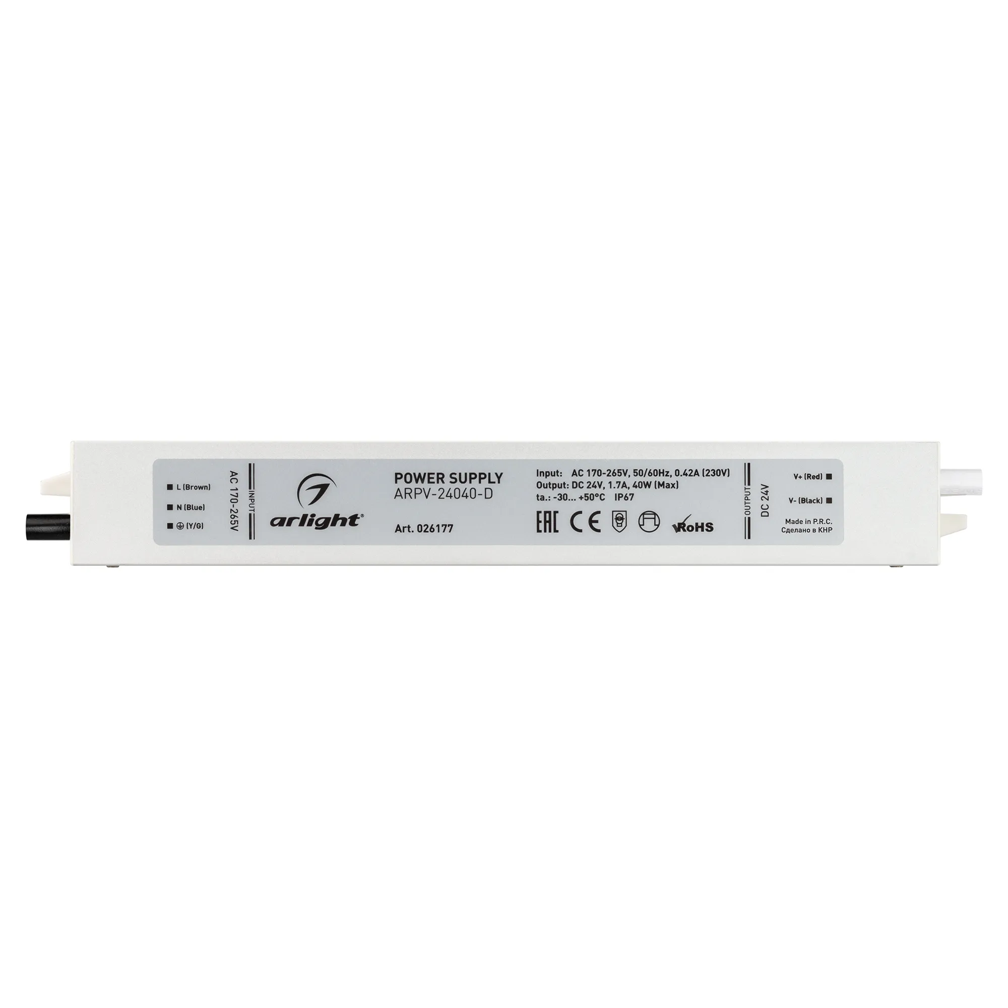 В магазине Арлед Маркет Вы можете купить "Блок питания ARPV-24040-D (24V, 1.7A, 40W) (Arlight, IP67 Металл, 3 года)"