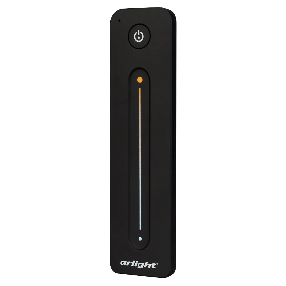 Пульт-слайдер 2.4 ГГц черного цвета для управления мультибелыми MIX источниками света. 1 зона управления, память пользовательских настроек, управление температурой света с помощью сенсорного слайдера. Питание 3VDC (CR2032). Габариты 139x36x11 мм. Изготовлен из пластика с покрытием Soft Touch. Совместим с диммерами, контроллерами и панелями серии SMART (поставляются отдельно).