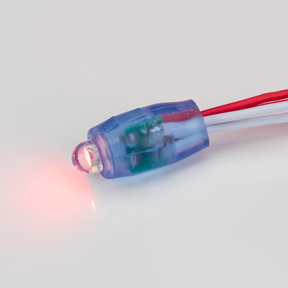 Герметичный светодиодный модуль IP65, КРАСНЫЙ 625 нм, напряжение 5 В, мощность 0.12 Вт, светодиод DIP 7 мм, угол 80°. 50 шт на проводе, расстояние между модулями 70 мм. Размер Ø12×26 мм. Не рекомендуется применять в условиях прямого попадания влаги. Гарантия 1 год.