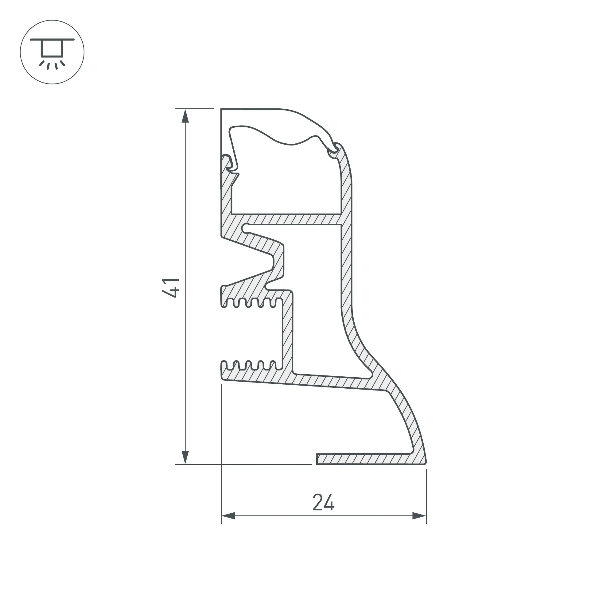 Алюминиевый анодированный накладной профиль-плинтус для светодиодных лент и линеек. Габаритные размеры (L×W×H): 2000x24x41 мм. Ширина площадки для ленты 12 мм. Экраны, заглушки и другие аксессуары приобретаются отдельно. Цена за 1 метр.