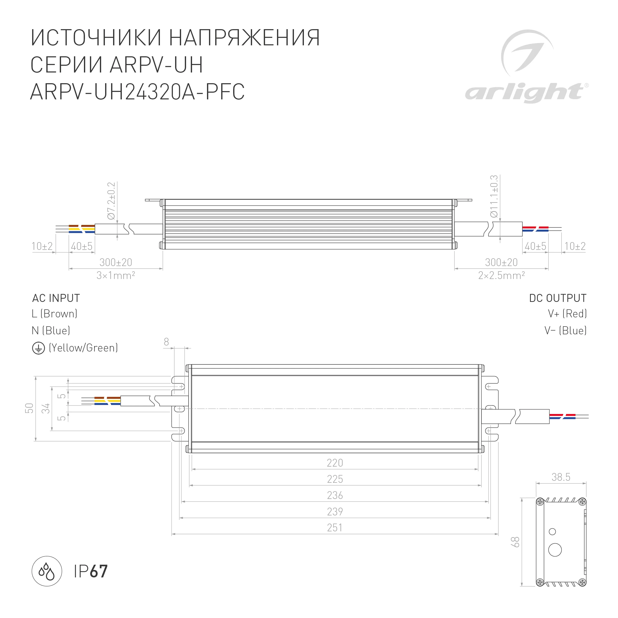 В магазине Арлед Маркет Вы можете купить "Блок питания ARPV-UH24320A-PFC (24V, 13.3A, 320W) (Arlight, IP67 Металл, 7 лет)"