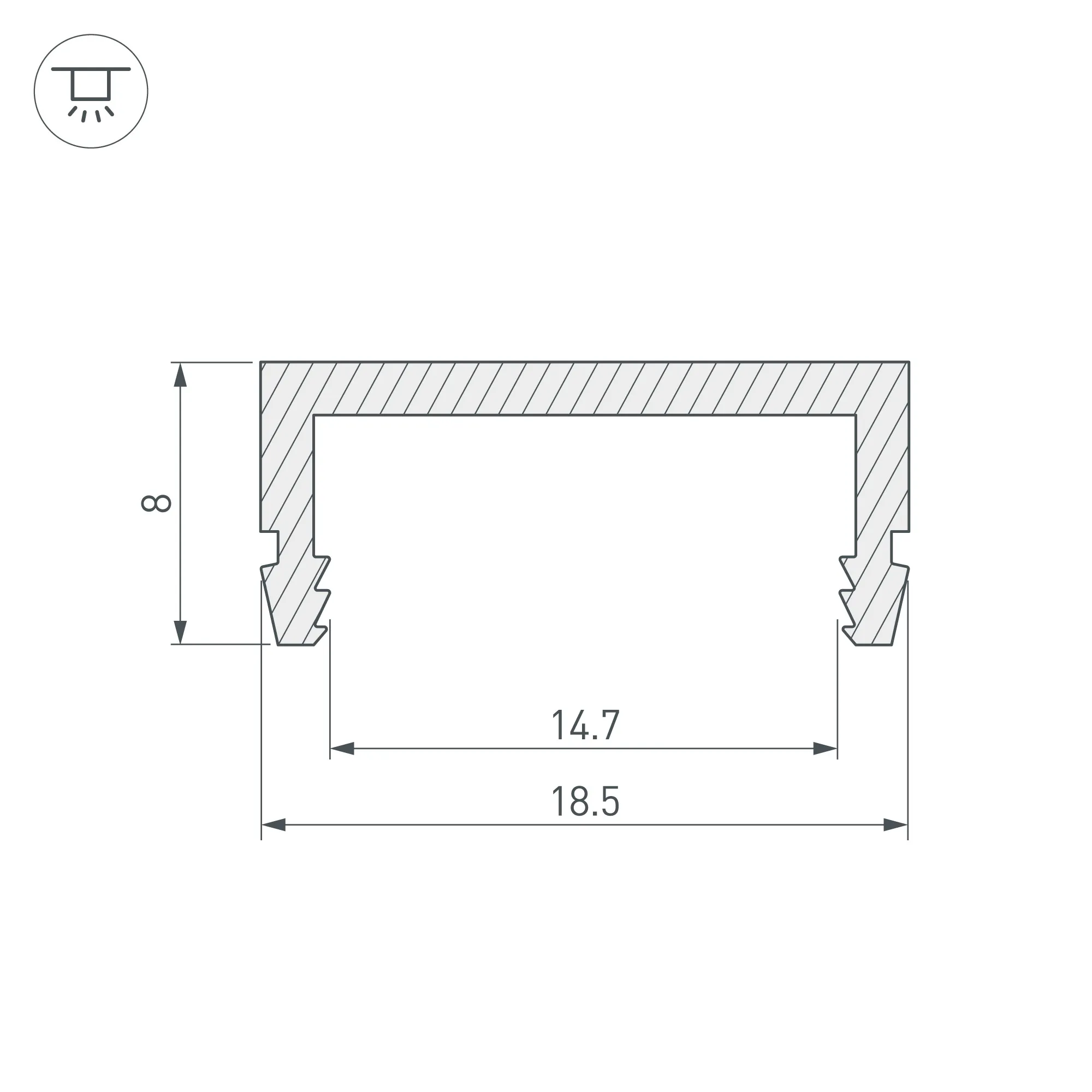 Алюминиевый профиль (канал) для фиксации ленты ARL-50000PV, тип WP2. Надежно фиксирует ленту, не требует использования 3М скотча для приклеивания. Длина 2000мм, размеры 18.5х8 мм. Цена за 1м.