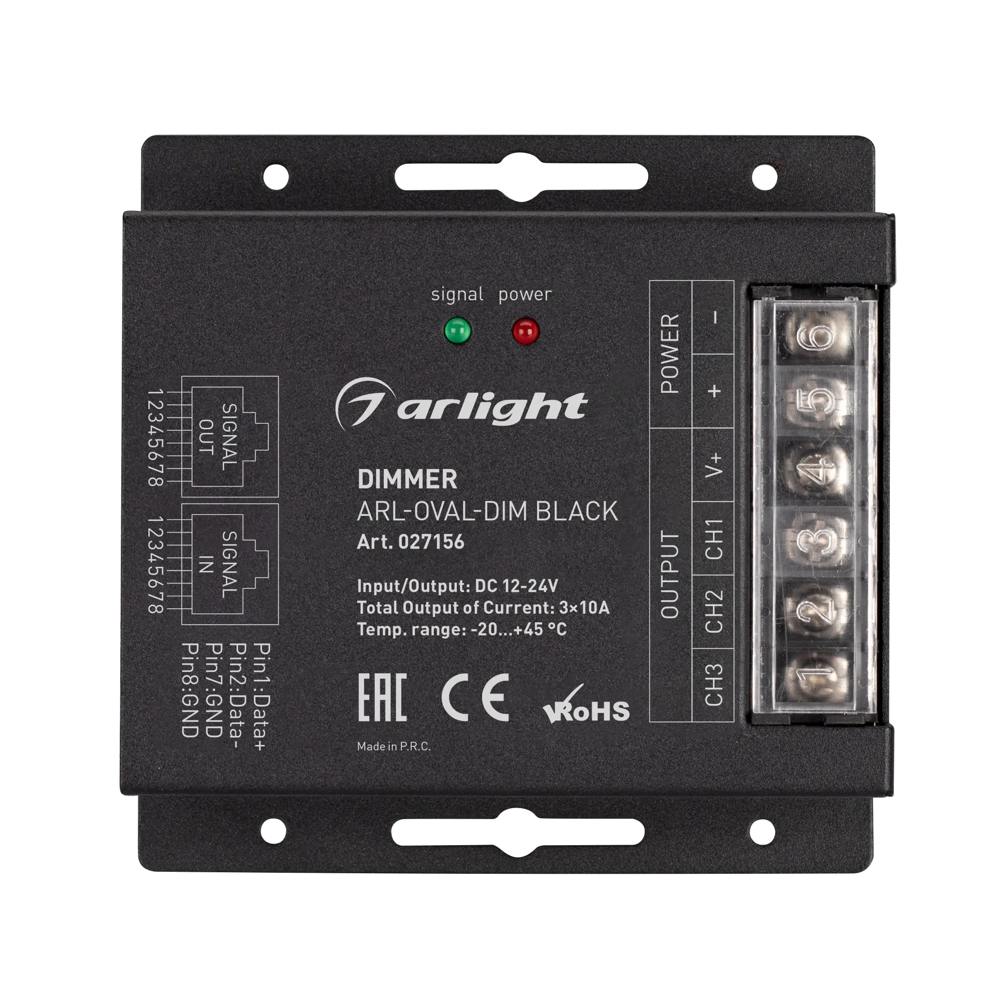 В магазине Арлед Маркет Вы можете купить "Диммер ARL-OVAL-DIM Black (12-24V, 3x10A, ПДУ Овал, RF, RJ45) (Arlight, IP20 Металл, 3 года)"