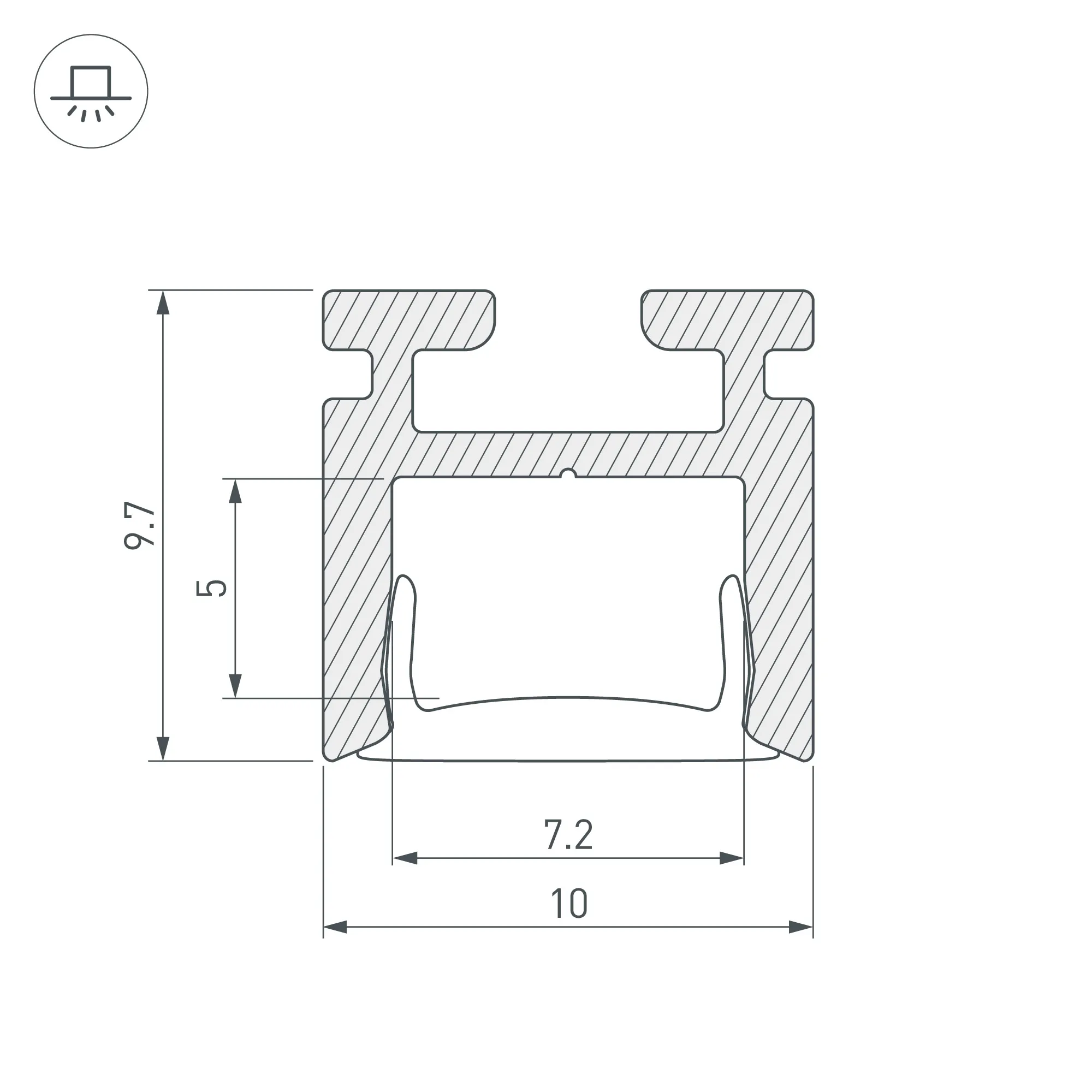 Алюминиевый анодированный мини-профиль для светодиодных лент и линеек, встраиваемый в профиль TEK-PIK-1010. Скрытой установки. Габаритные размеры (L×W×H): 2000x10x9,7 мм. Ширина площадки для ленты 7,2 мм. Экраны, заглушки и другие аксессуары приобретаются отдельно. Цена за 1 метр.