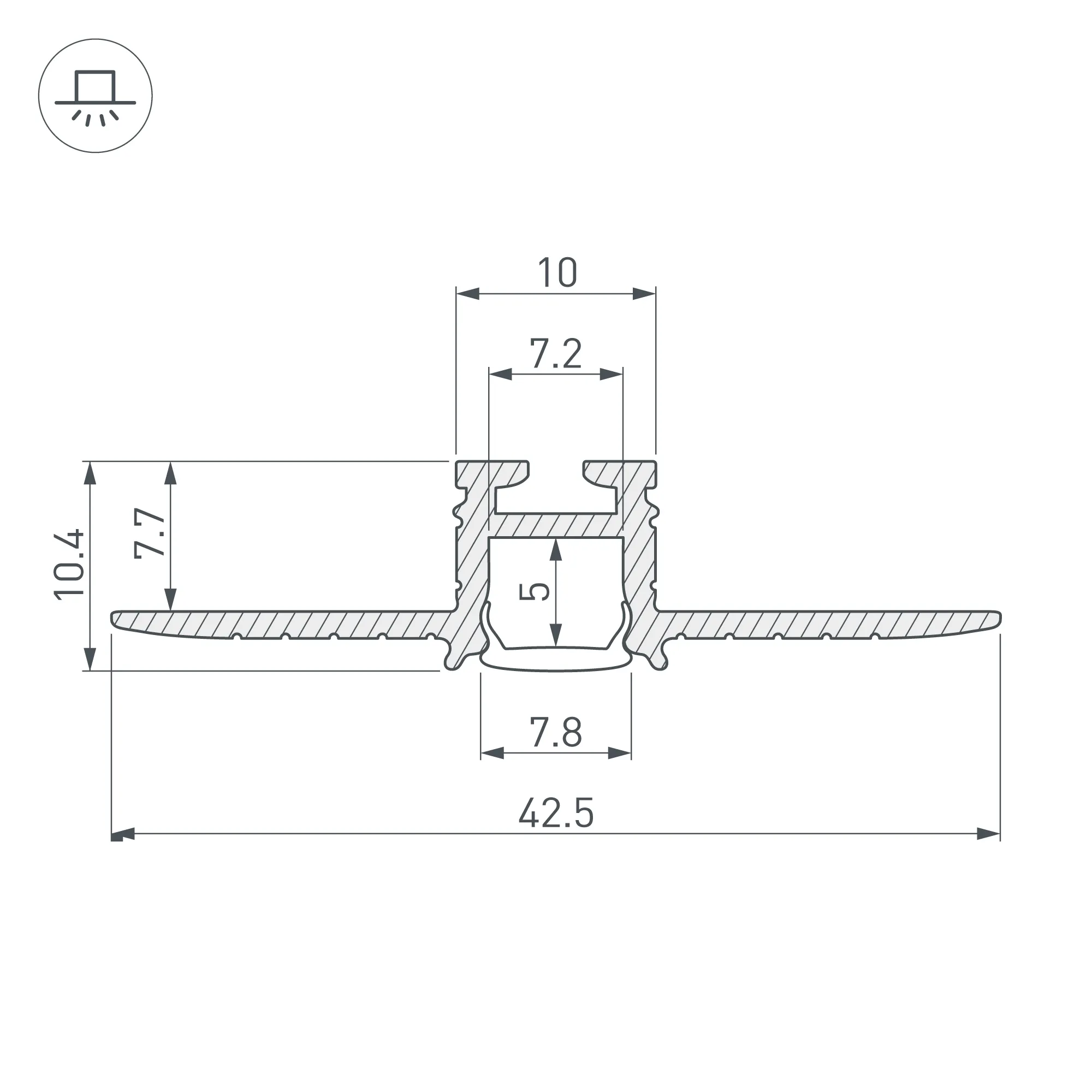 Алюминиевый мини-профиль для светодиодных лент и линеек, встраиваемый в гипсокартон, под строительную отделку. Габаритные размеры (L×W×H): 2000x42,5x10,4 мм. Позволяет создать узкую элегантную линию света без видимых частей алюминия. Ширина световой линии 7,8 мм. Ширина площадки для ленты 7,2 мм. Экраны, заглушки и другие аксессуары приобретаются отдельно. Цена за 1 метр.