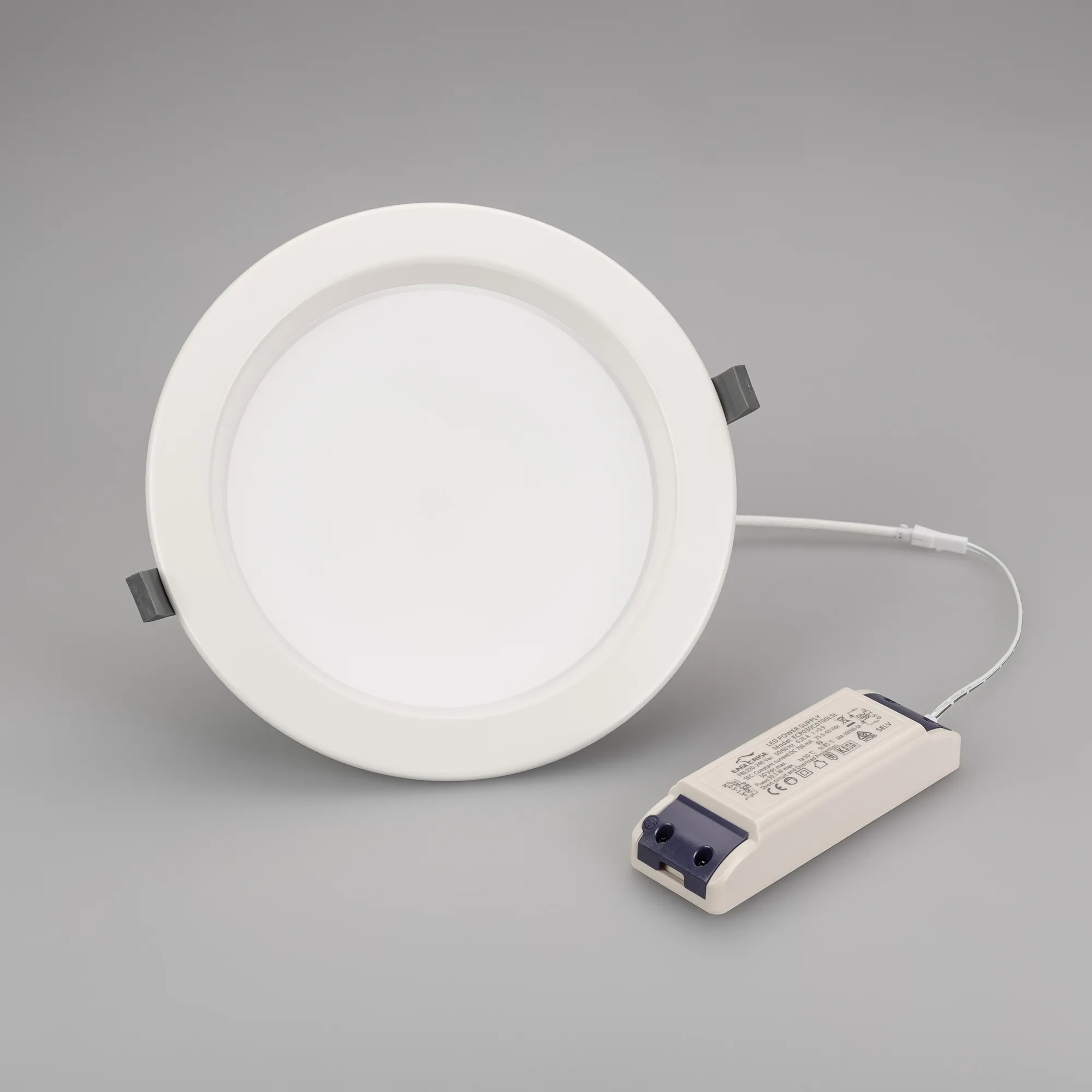Встраиваемый светильник "Даунлайт" 30Вт. Цвет свечения ДНЕВНОЙ БЕЛЫЙ 4000К. Световой поток 2820лм, угол 90°, CRI>80. Белый корпус. Питание AC220-240V. Габариты: Ø230х75мм, врезное отверстие Ø192-210мм. Драйвер в комплекте (25-43V, 700mA).
