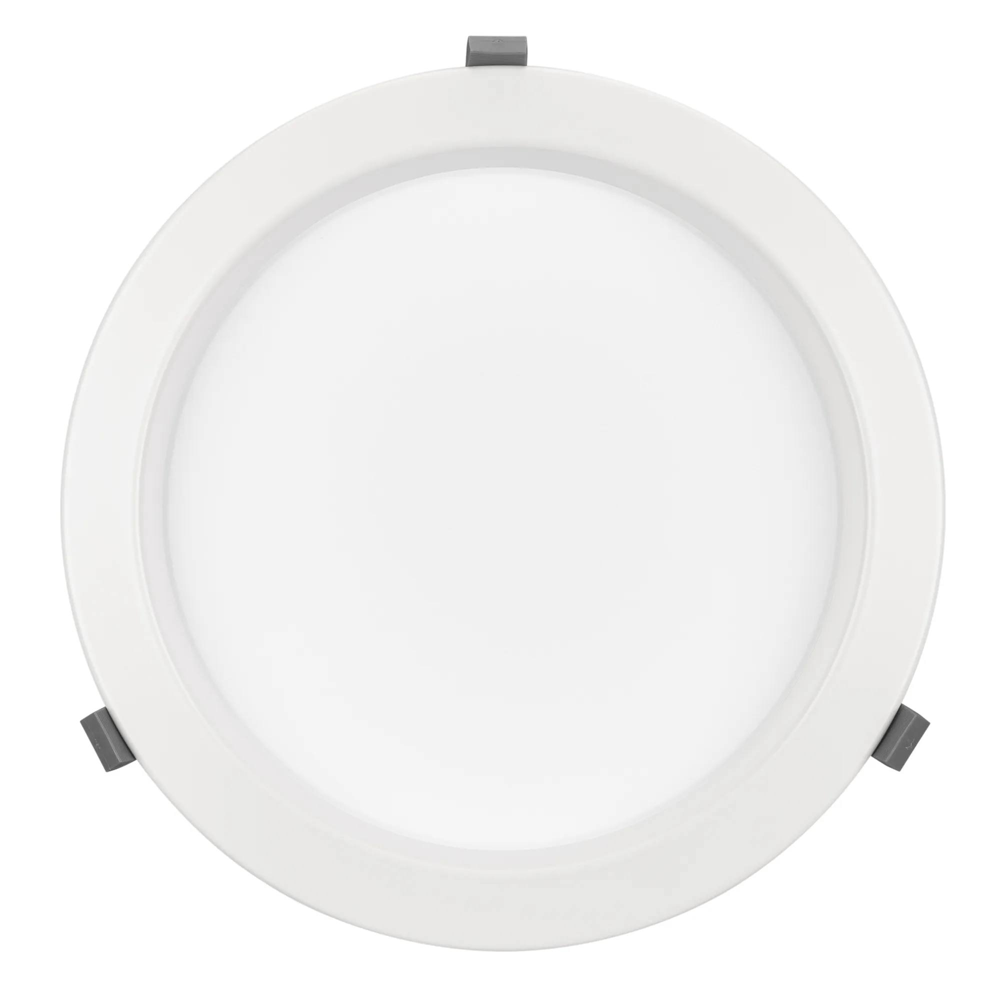 Встраиваемый светильник "Даунлайт" 40Вт. Цвет свечения ДНЕВНОЙ БЕЛЫЙ 4000К. Световой поток 3880лм, угол 90°, CRI>80. Белый корпус. Питание AC220-240V. Габариты: Ø280х94мм, врезное отверстие Ø240-255мм. Драйвер в комплекте (23-40V, 1050mA).