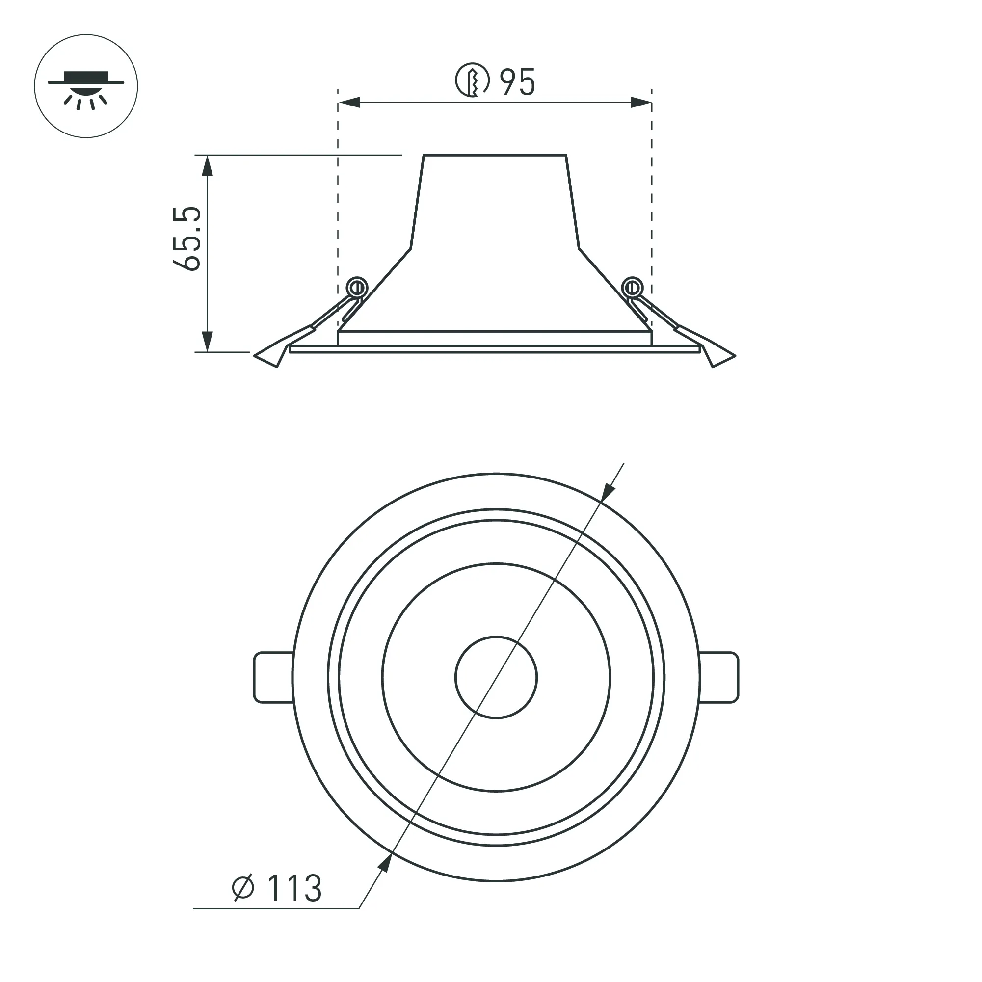 Встраиваемый светильник "Даунлайт" 10Вт. Цвет свечения ТЕПЛЫЙ 3000К. Световой поток 800лм, угол 50°, CRI>80. Белый корпус. Питание AC220-240V. Габариты: Ø113х65.5мм, врезное отверстие Ø90-102мм. Драйвер в комплекте (18-35V, 350mA).