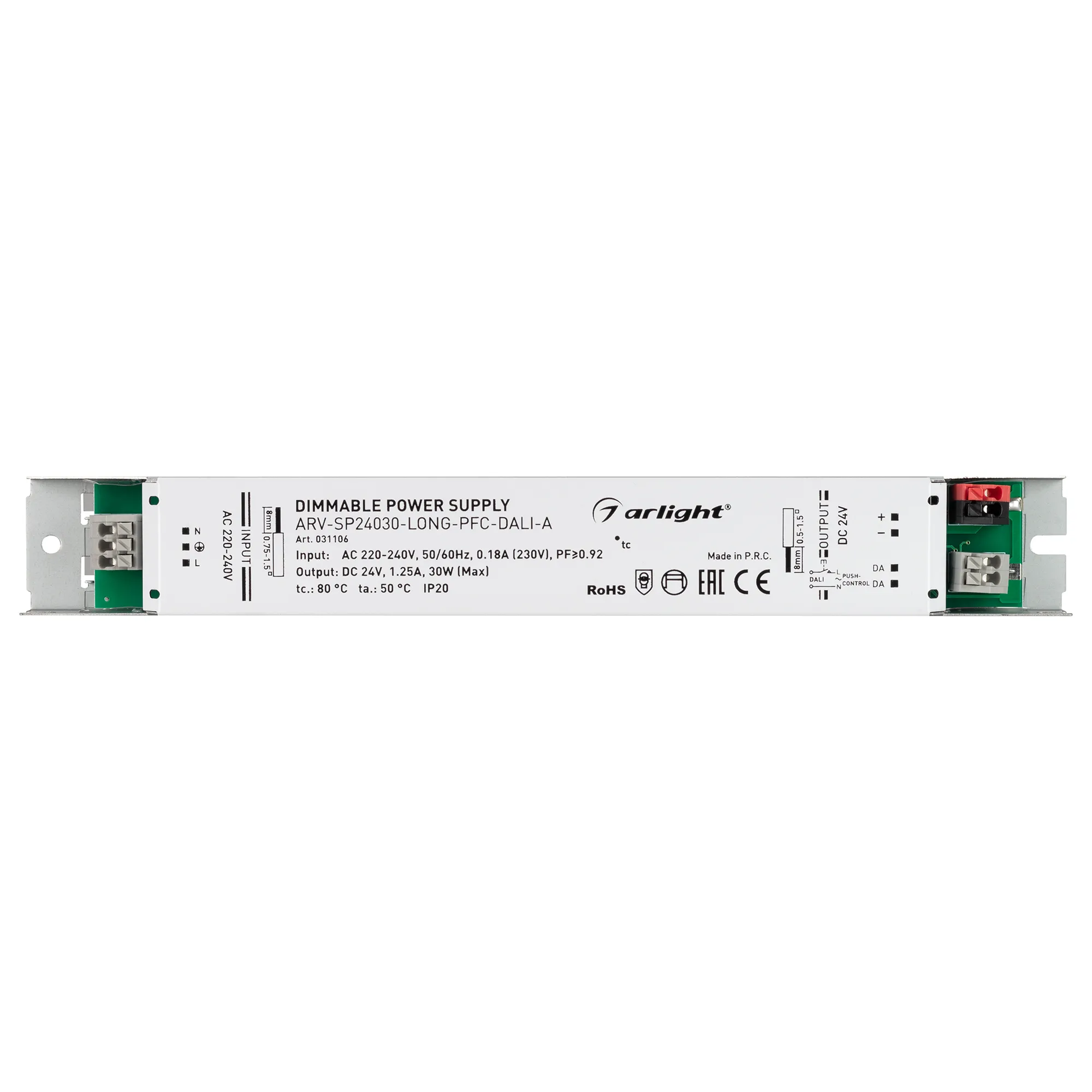 В магазине Арлед Маркет Вы можете купить "Блок питания ARV-SP24030-LONG-PFC-DALI-A (24V, 1.25A, 30W) (Arlight, IP20 Металл, 5 лет)"