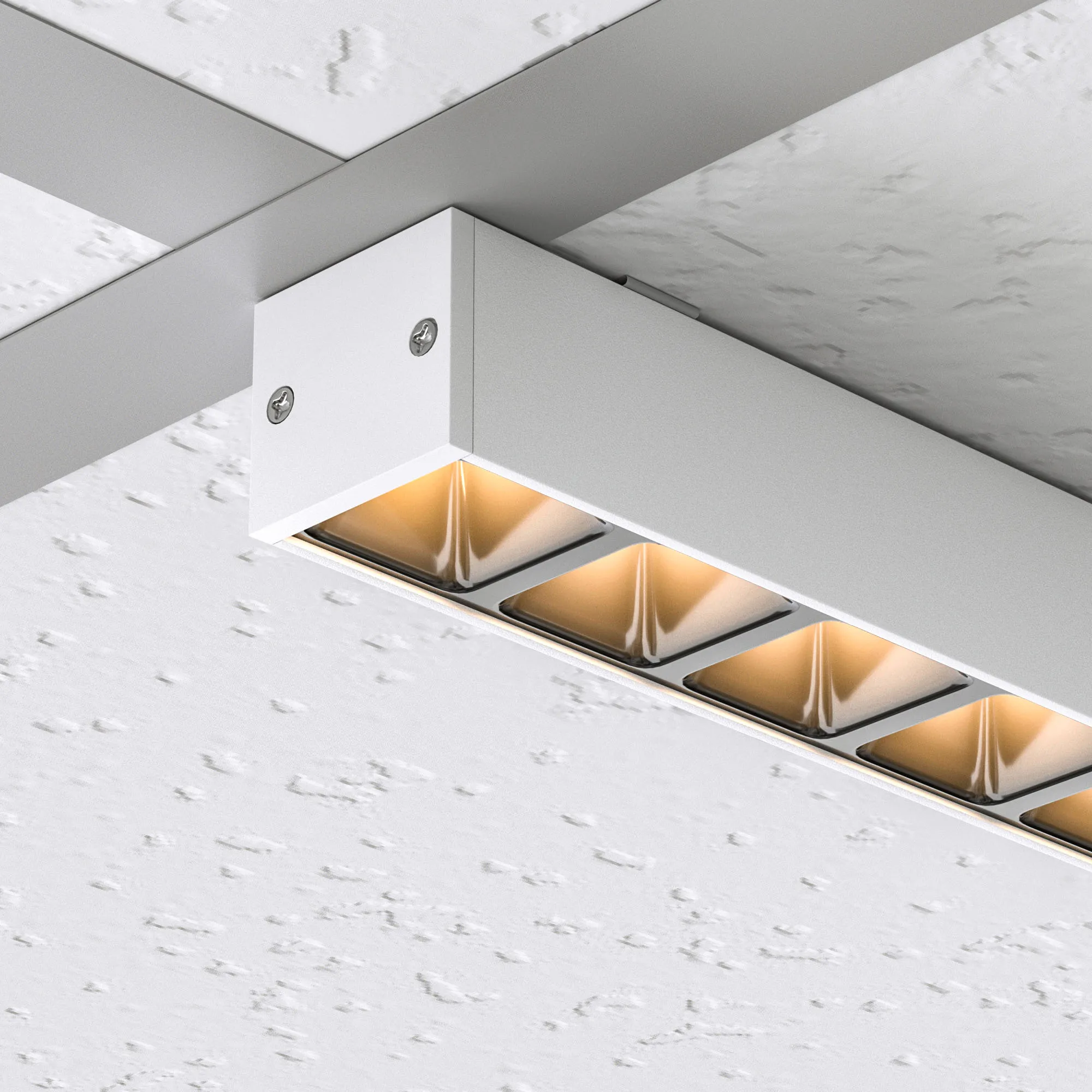 Светодиодный светильник для направляющих потолка Армстронг шириной 15 и 24 мм. Мощность 28 Вт, св. поток 2200 лм, 81 лм/Вт, дневной 4000K, CRI>80, угол 80°, напряжение питания 48 В. Белый квадратный корпус из алюминия, экран PC, степень защиты IP40. Размер: длина 1200 мм, ширина 25 мм, высота 28 мм. Монтаж накладной. Драйвер поставляется отдельно.