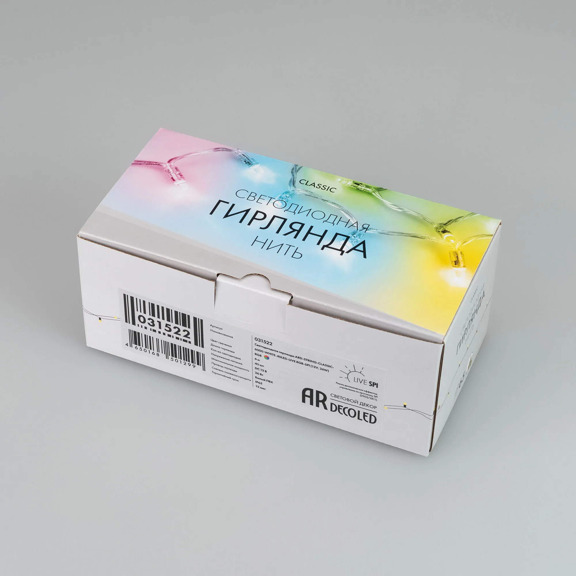 Светодиодная гирлянда ARD-STRING-CLASSIC-6000-WHITE-40LED-LIVE RGB-SPI (12V, 26W) (Ardecoled, IP65)