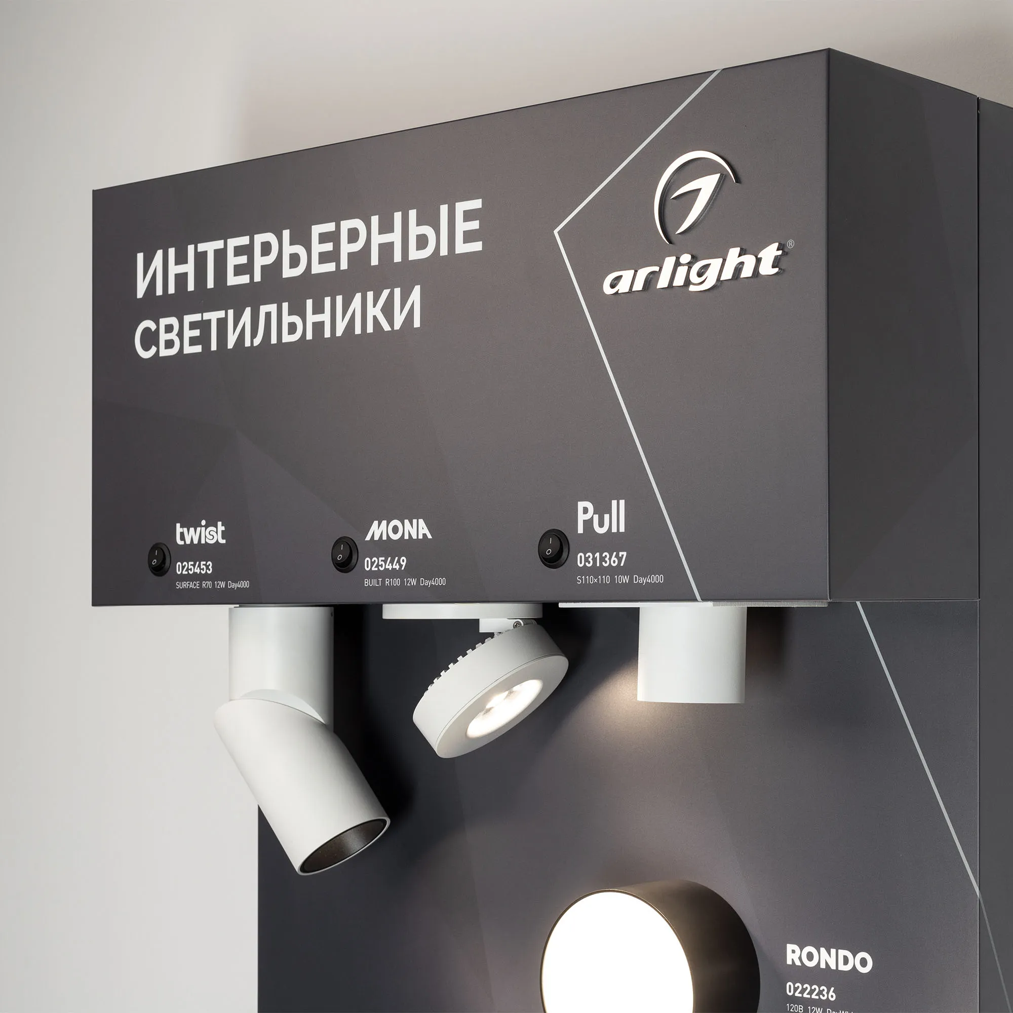 Стенд Интерьерные светильники. Материал - композит 3 мм, пленка, печать.