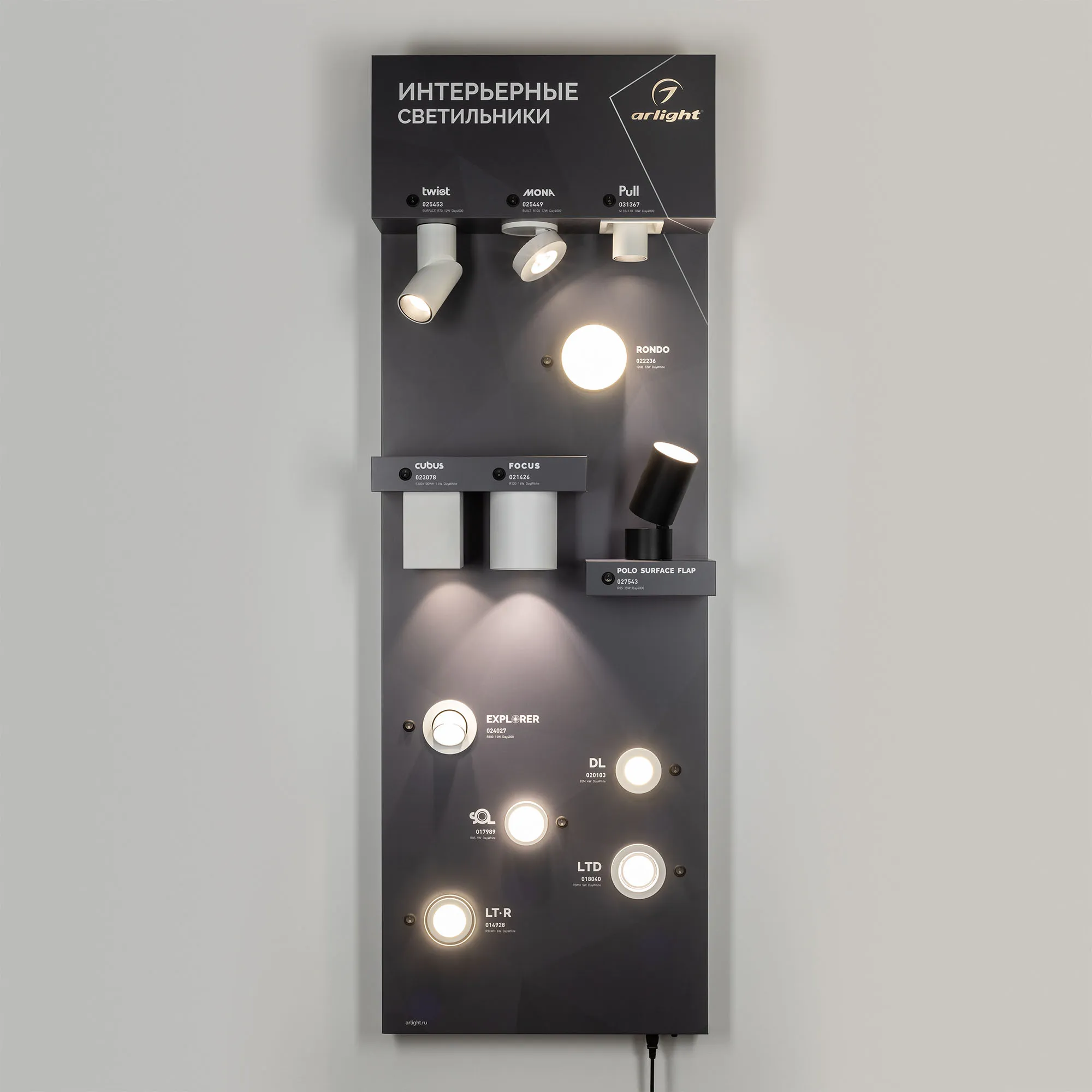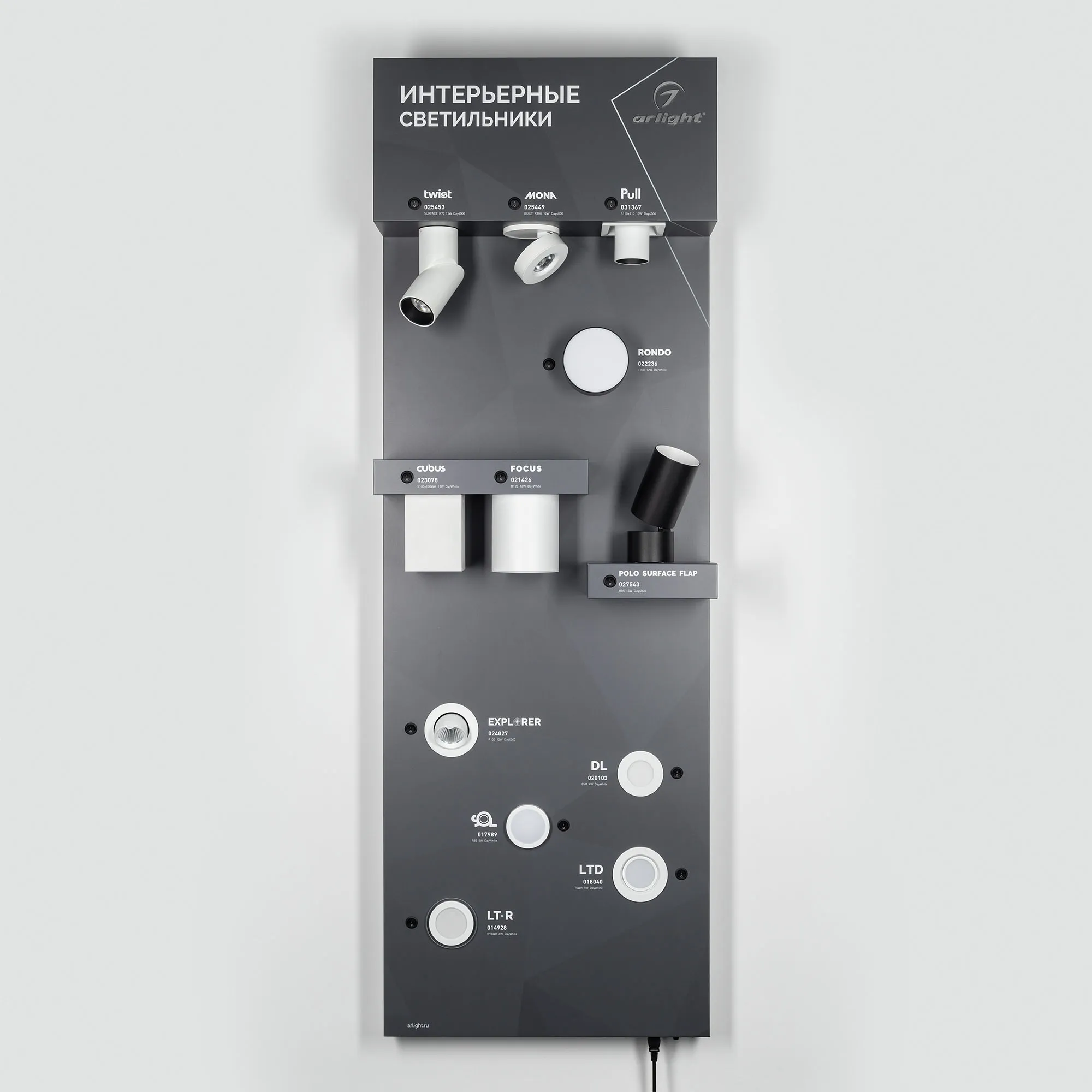В магазине Арлед Маркет Вы можете купить "Стенд Интерьерные светильники Е31-1760х600mm (DB 3мм, пленка) (Arlight, -)"