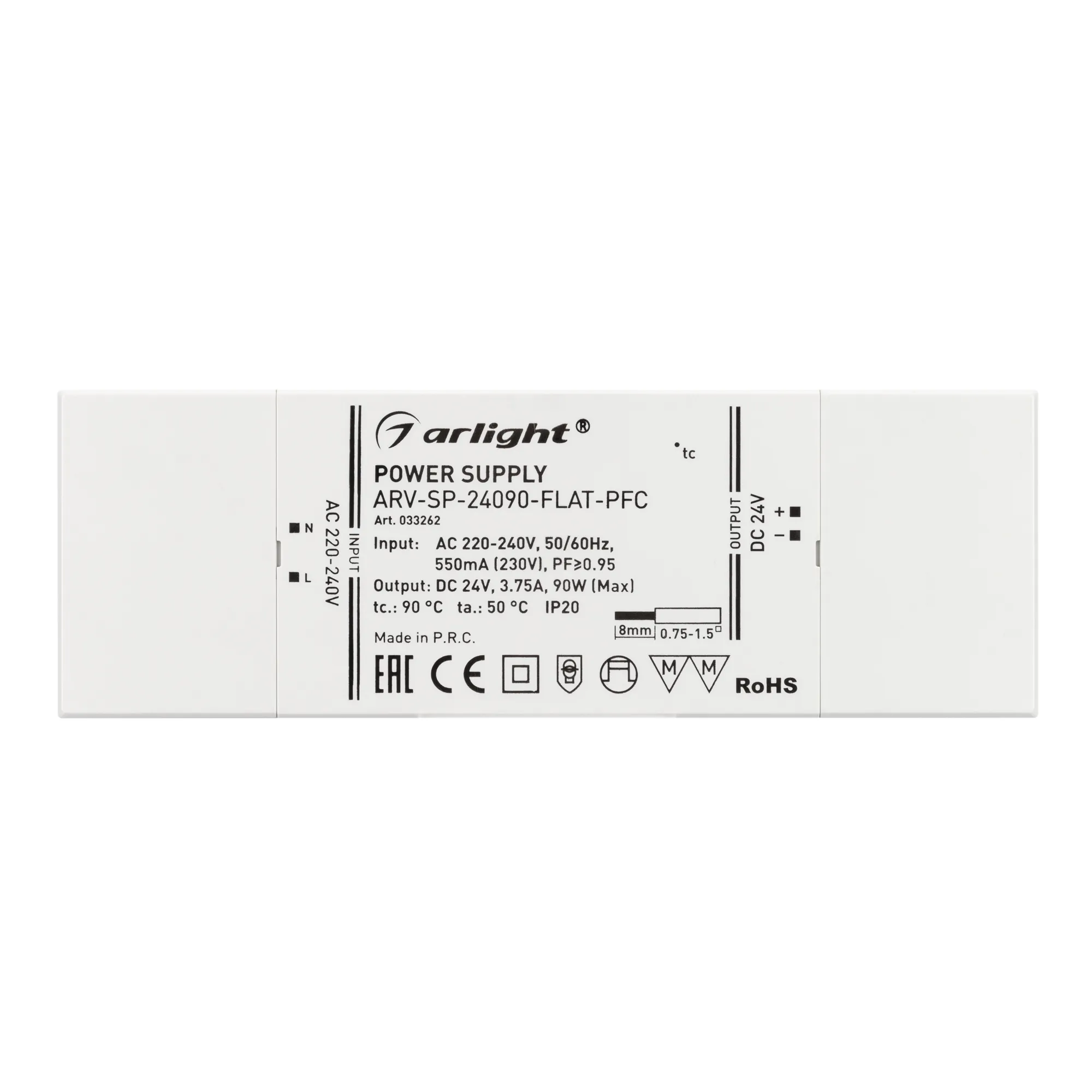В магазине Арлед Маркет Вы можете купить "Блок питания ARV-SP-24090-FLAT-PFC (24V, 3.75A, 90W) (Arlight, IP20 Пластик, 5 лет)"