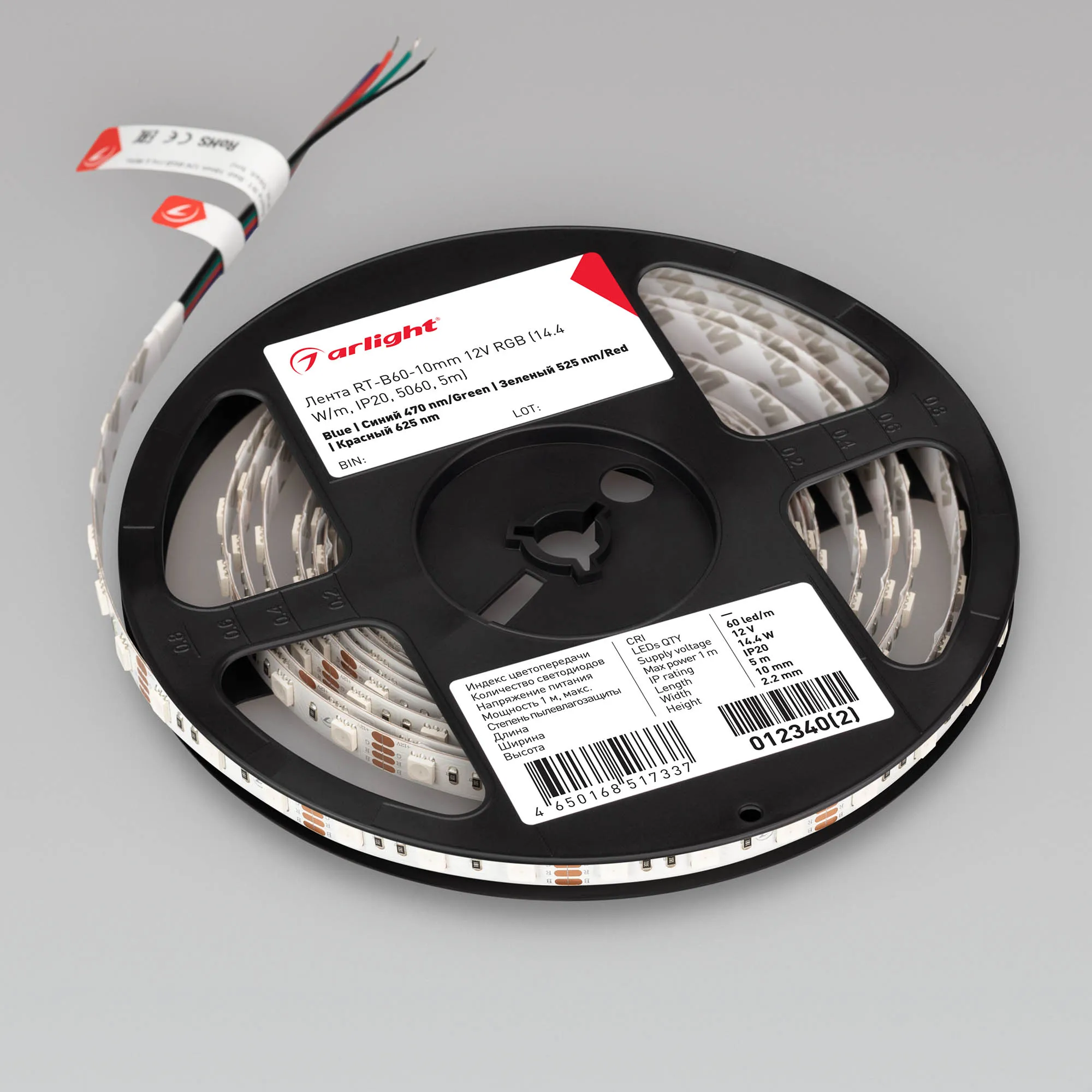 В магазине Арлед Маркет Вы можете купить "Лента светодиодная RT-B60-10mm 12V RGB (14.4 W/m, IP20, 5060, 5m) (Arlight, Открытый)"