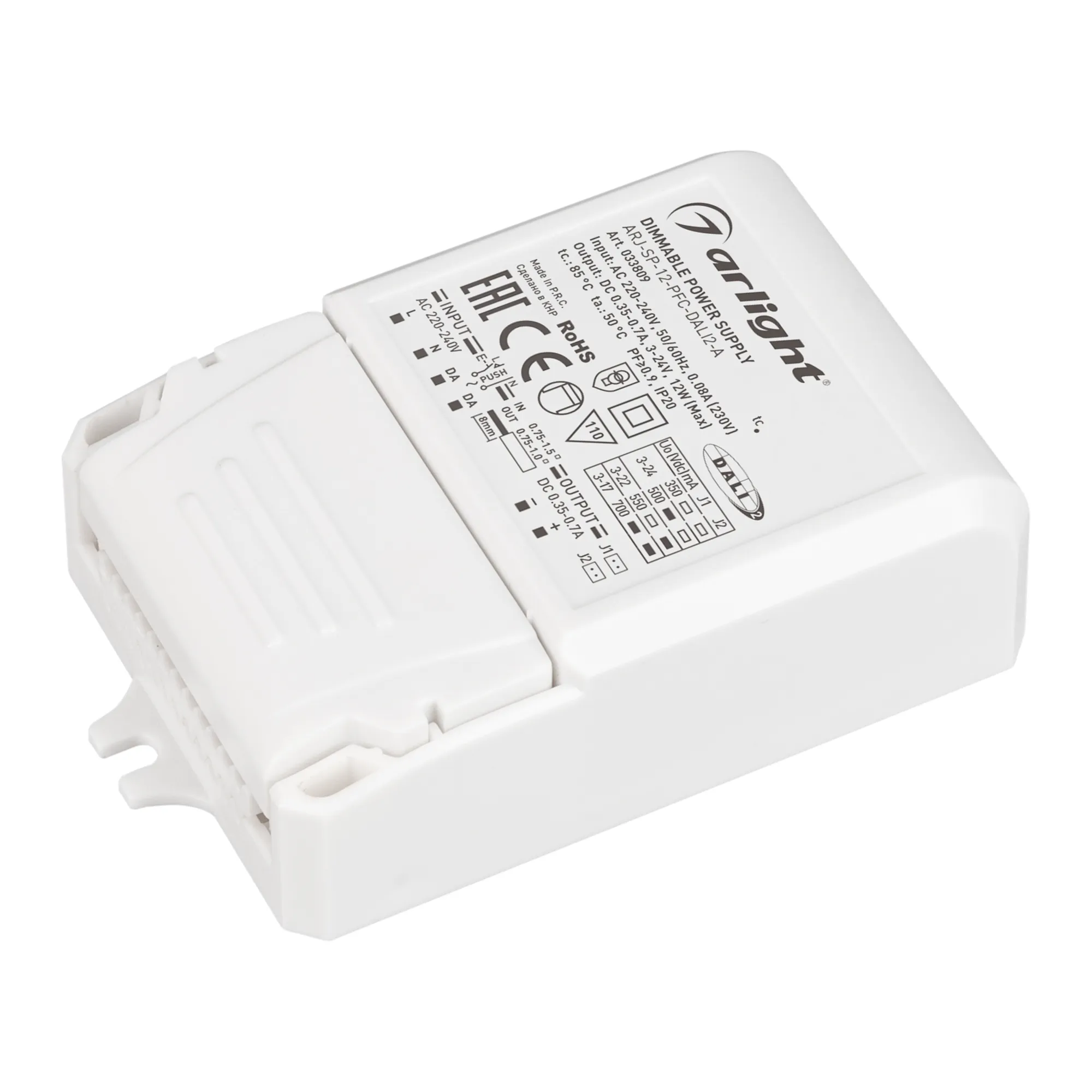 Блок питания ARJ-SP-12-PFC-DALI2-A (12W, 3-24V, 0.35-0.7A) (Arlight, IP20 Пластик, 5 лет)