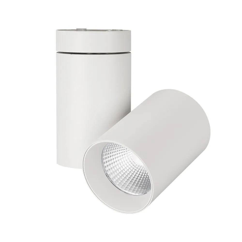 Корпус накладной поворотный для светильника POLO-R85 (1 часть из 3). Материал корпуса белый алюминий. Размер DxLxL1xW Ø85×124×150×175мм, встроенный драйвер PRI:220-240VAC, SEC:DC 350mA 30-43V, 15Вт.