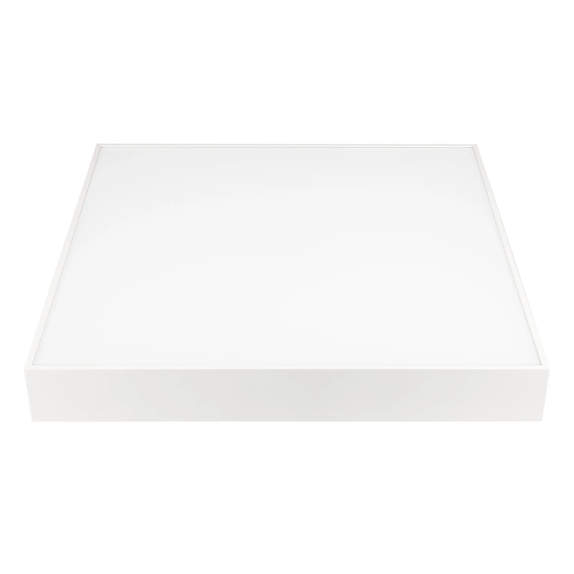 Поставка под заказ от 100 шт. Накладной светильник. Мощность 50 Вт, св. поток 4100-4400 лм, 80-90 лм/Вт, теплый 3000 K, CRI>90, угол 120°, напряжение питания 230 В. Белый квадратный корпус из алюминия, экран PC, степень защиты IP40. Размер: длина 500 мм, ширина 500 мм, высота 64 мм. Монтаж накладной. Драйвер 27-42 В, 1200 мА, пульсация <5%.