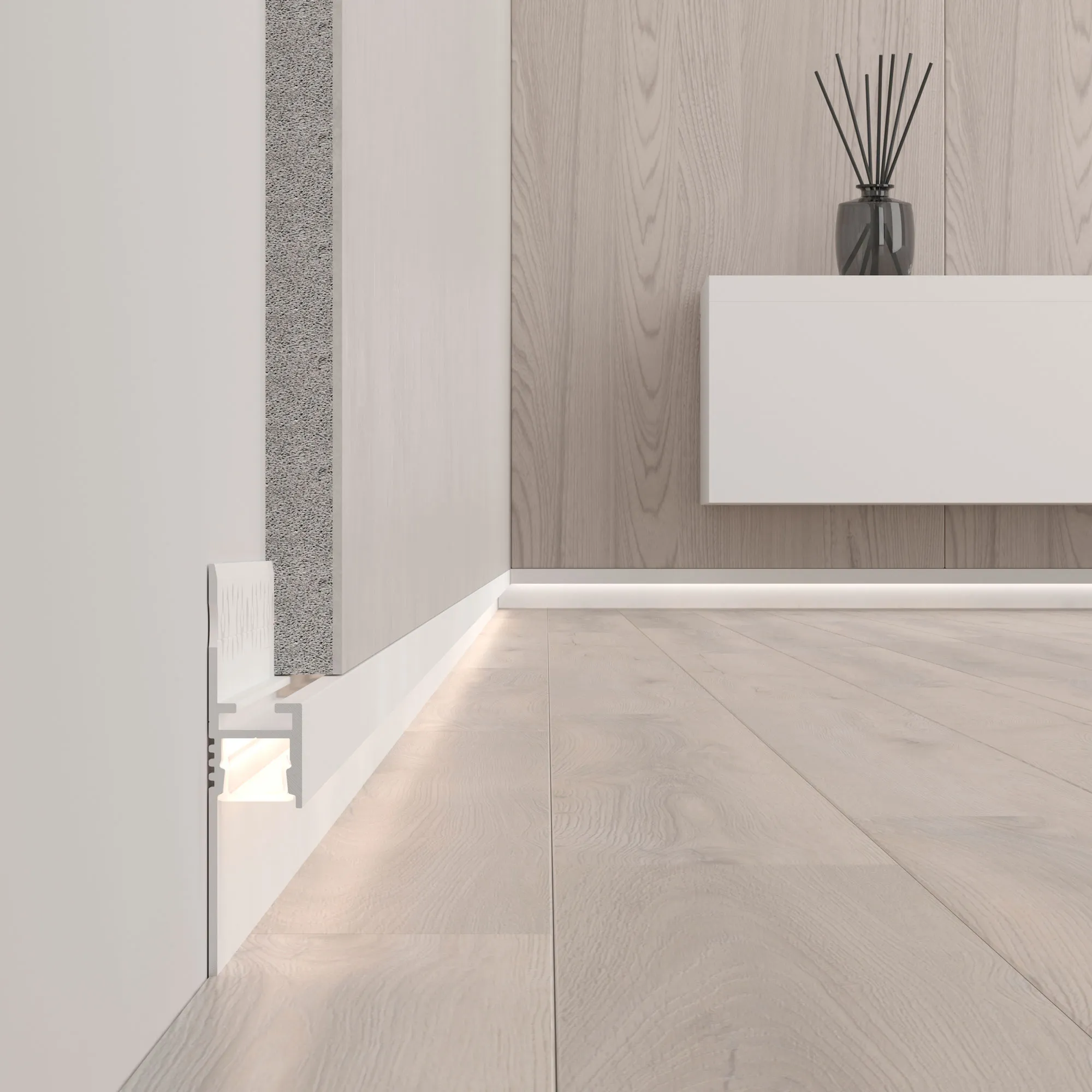 Алюминиевый профиль для светодиодных лент и линеек, для подсветки стен и пола по периметру. Цвет-белый RAL9003 (порошковая окраска). Габаритные размеры (L×W×H): 2000x13,2x60 мм. Ширина площадки для ленты 9,2 мм. Аксессуары приобретаются отдельно. Цена за метр.