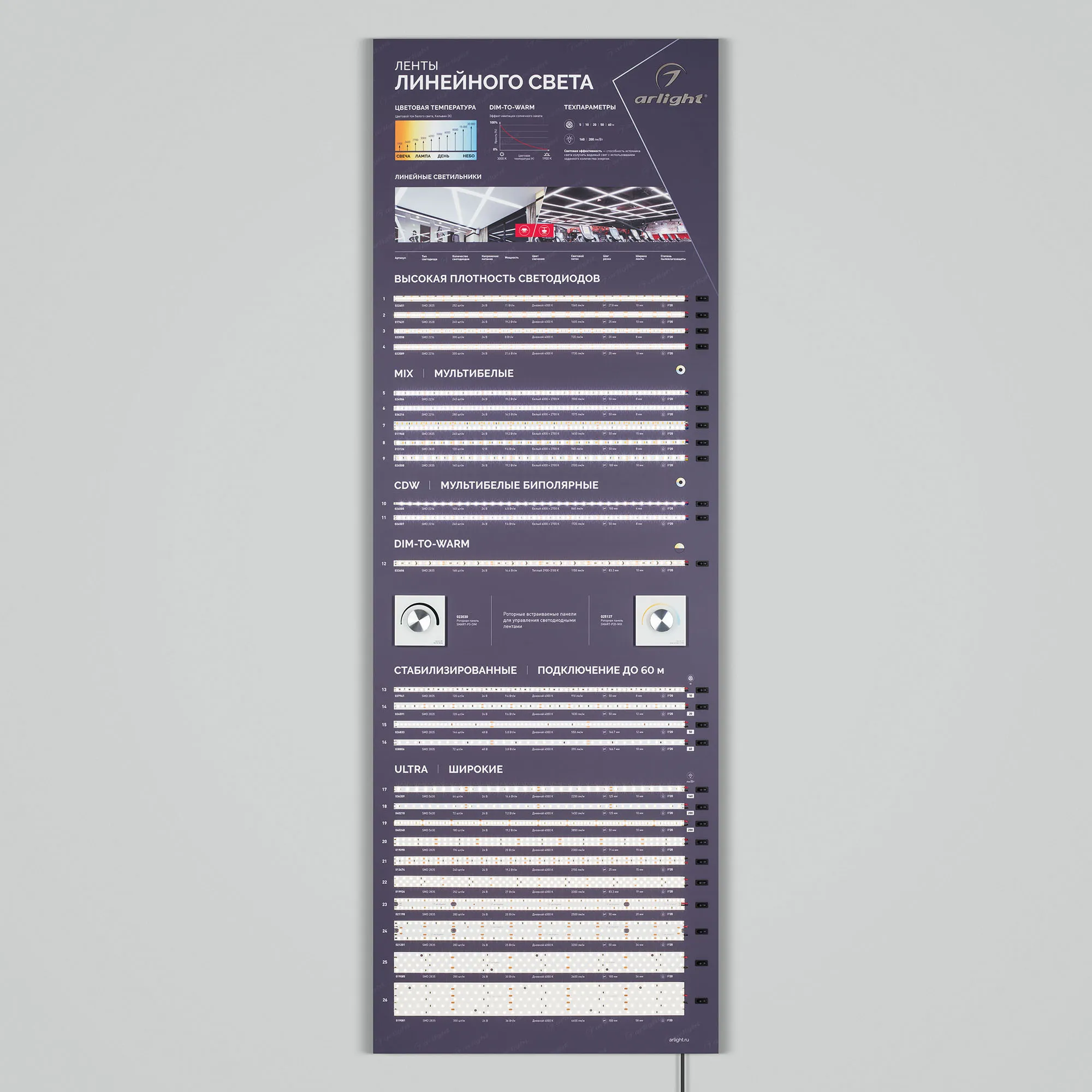 В магазине Арлед Маркет Вы можете купить "Стенд Ленты Линейного Света RT-LUX-E2-1760x600mm (v.2, DB 3мм, пленка, подсветка) (Arlight, -)"