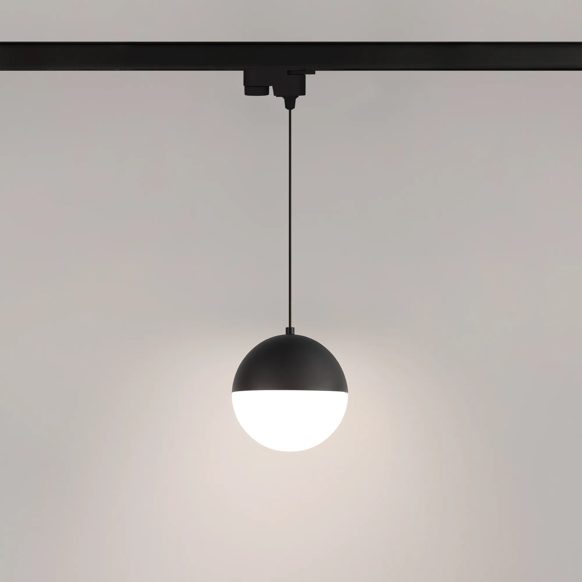 Светильник подвесной для треков/шин 2 провода. Мощность 11 Вт, св. поток 960 лм, 80 лм/Вт, дневной 4000 K, CRI>90, угол 170°, напряжение питания 230 В. Черный корпус из алюминия, материал плафона стекло, степень защиты IP20. Размер: диаметр 150 мм, длина подвеса 1500 мм. Монтаж на трек 1-фазный. Драйвер 28-42 В, 250 мА, пульсация <1%.