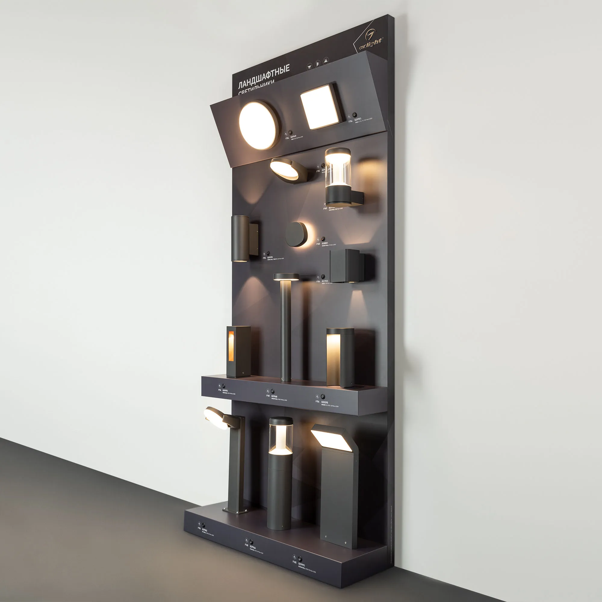 В магазине Арлед Маркет Вы можете купить "Стенд Cветильники ландшафтные ARLIGHT-E21-2460x1000mm (DB 3мм, пленка, подсветка) (Arlight, -)"
