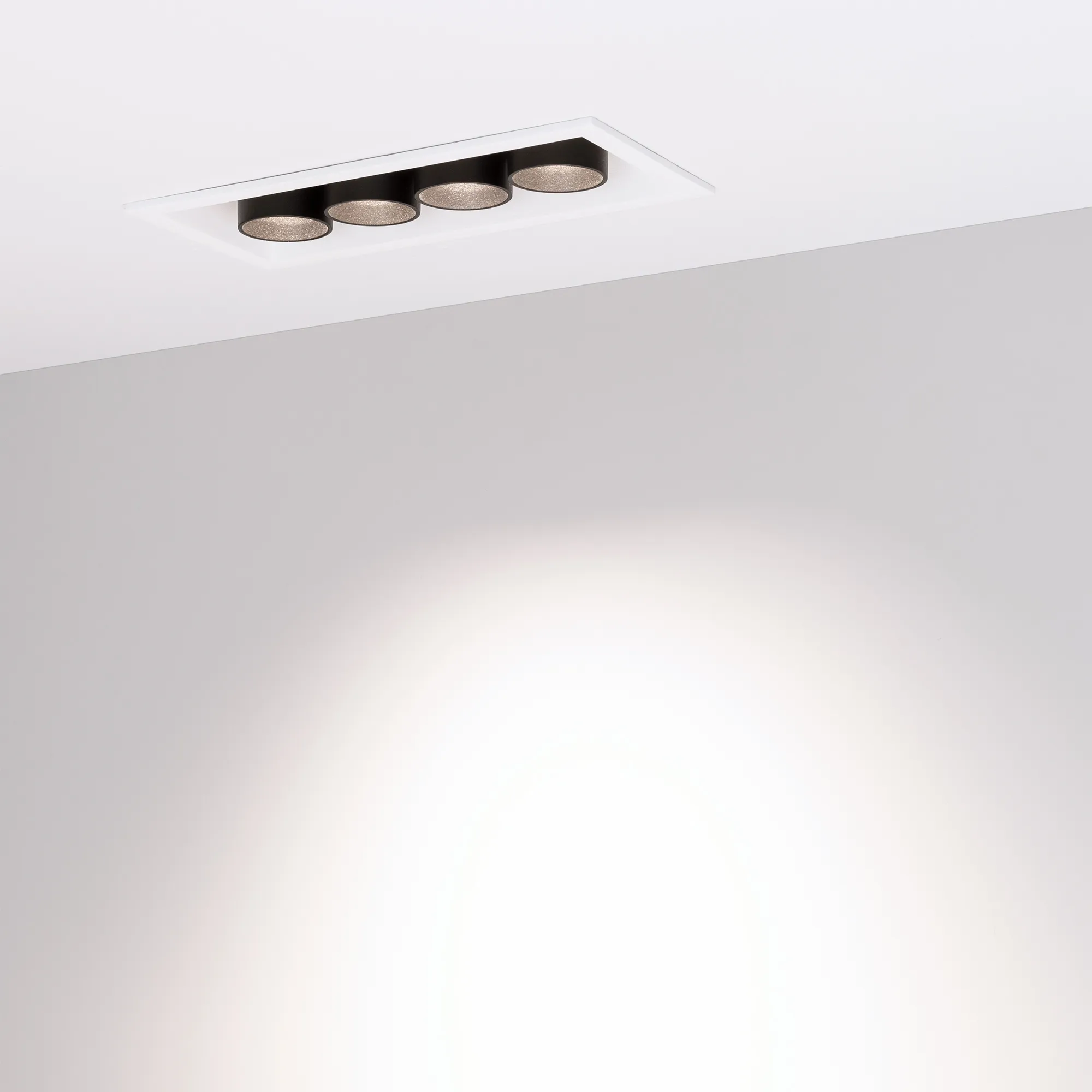 Встраиваемый поворотный светильник. Мощность 10 Вт, св. поток 750 лм, 75 лм/Вт, теплый 3000 K, CRI>98, угол 30°, напряжение питания 230 В. Чёрный прямоугольный корпус из алюминия, экран PMMA, степень защиты IP20. Размер: длина 150 мм, ширина 67 мм, высота 50 мм. Монтаж встраиваемый, установочное отверстие длина 145 мм, ширина 60 мм. Драйвер 9-14 В, 700 мА, пульсация <1%.