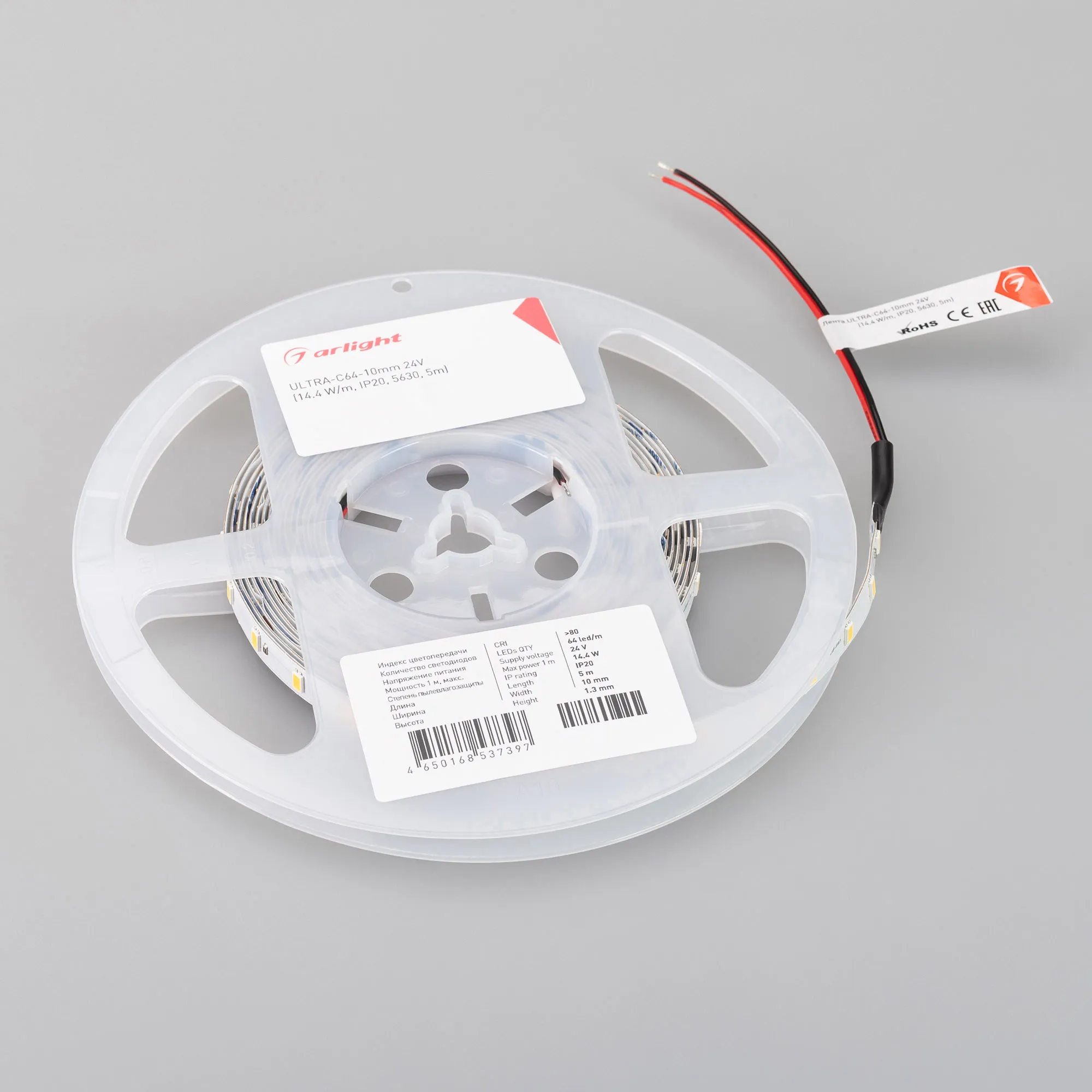 В магазине Арлед Маркет Вы можете купить "Лента светодиодная ULTRA-C64-10mm 24V White6000 (14.4 W/m, IP20, 5630, 5m) (Arlight, высок.эфф.160 лм/Вт)"