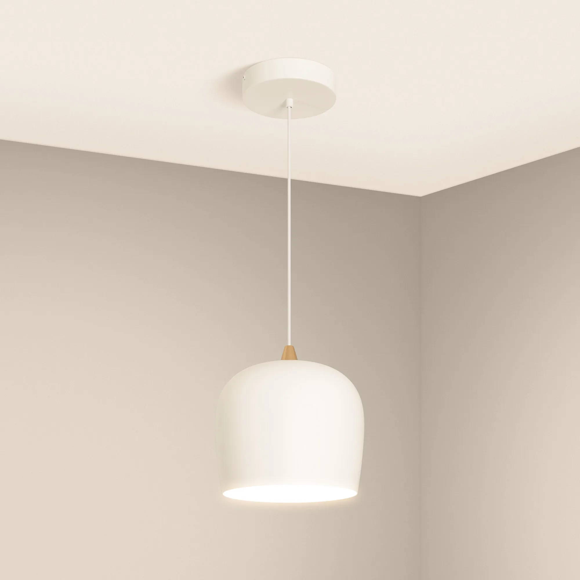 Подвесной светильник. Мощность 15 Вт, св. поток 730 лм, 50 лм/Вт, теплый 3000 K, CRI>90, угол 65°, напряжение питания 230 В. Белый круглый корпус из алюминия, степень защиты IP20. Размер: диаметр 250 мм, высота 250 мм, размер чаши: диаметр 160 мм, высота 35 мм. Монтаж подвесной, длина подвеса 1500мм. Драйвер 24-40 В, 350 мА, пульсация <5%.