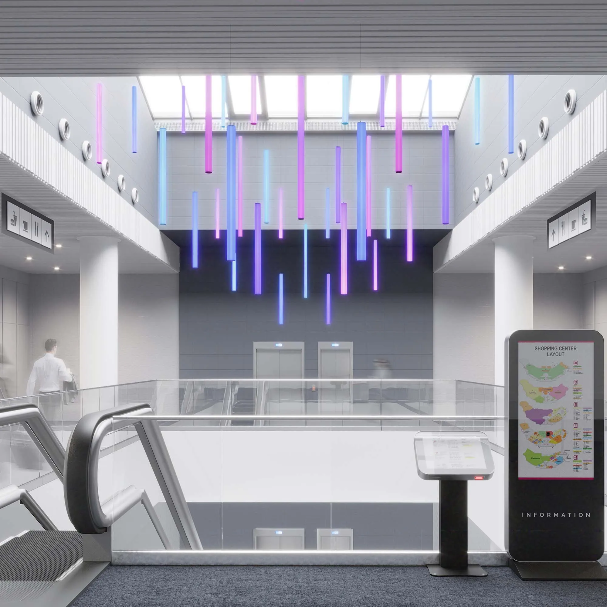8 одинаковых площадок, 1 общий экран, светят в разные стороны