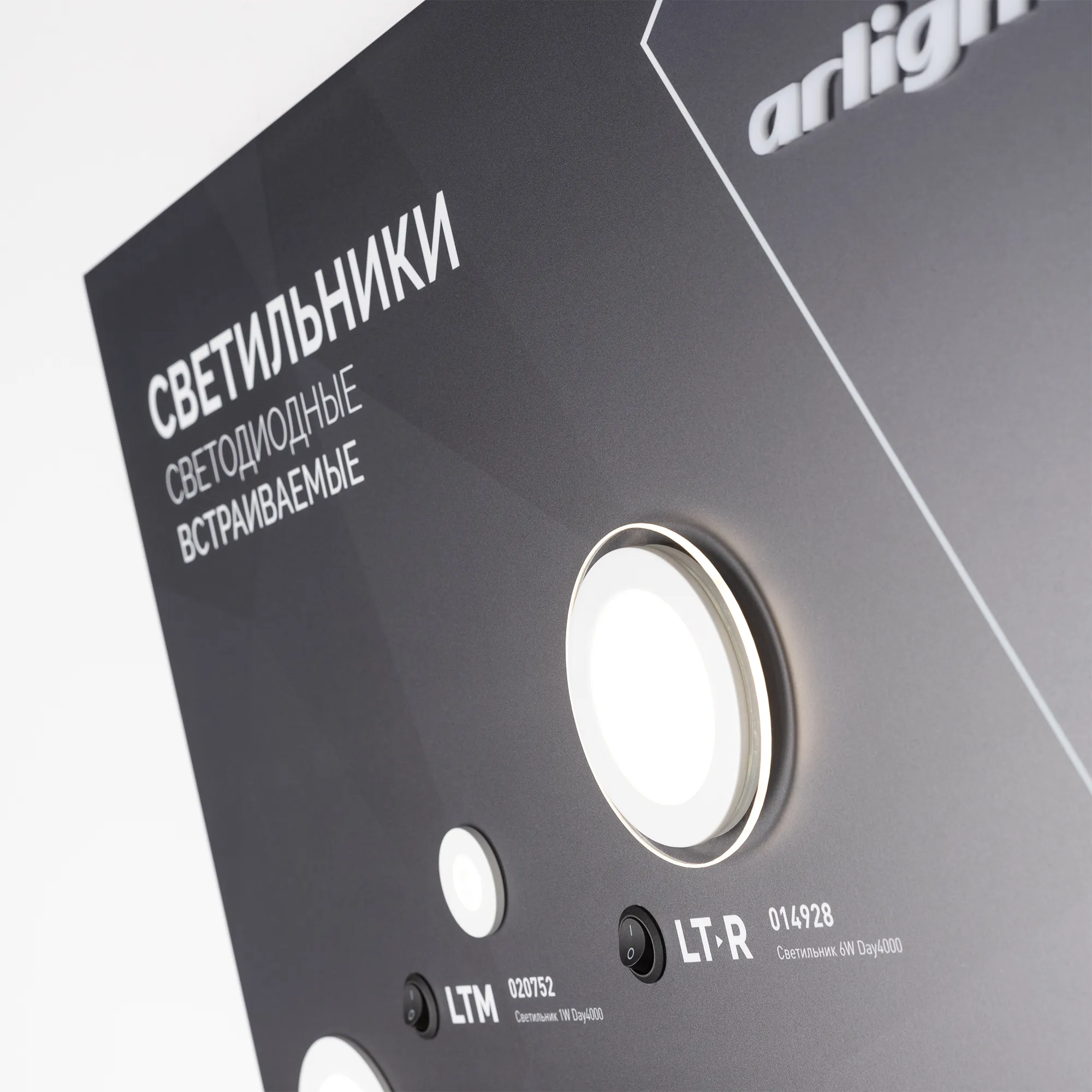 Стенд Светильники встраиваемые Интерьерные ARLIGHT-1100x600mm (DB 3мм, пленка, подсветка) (Arlight, Пластик)