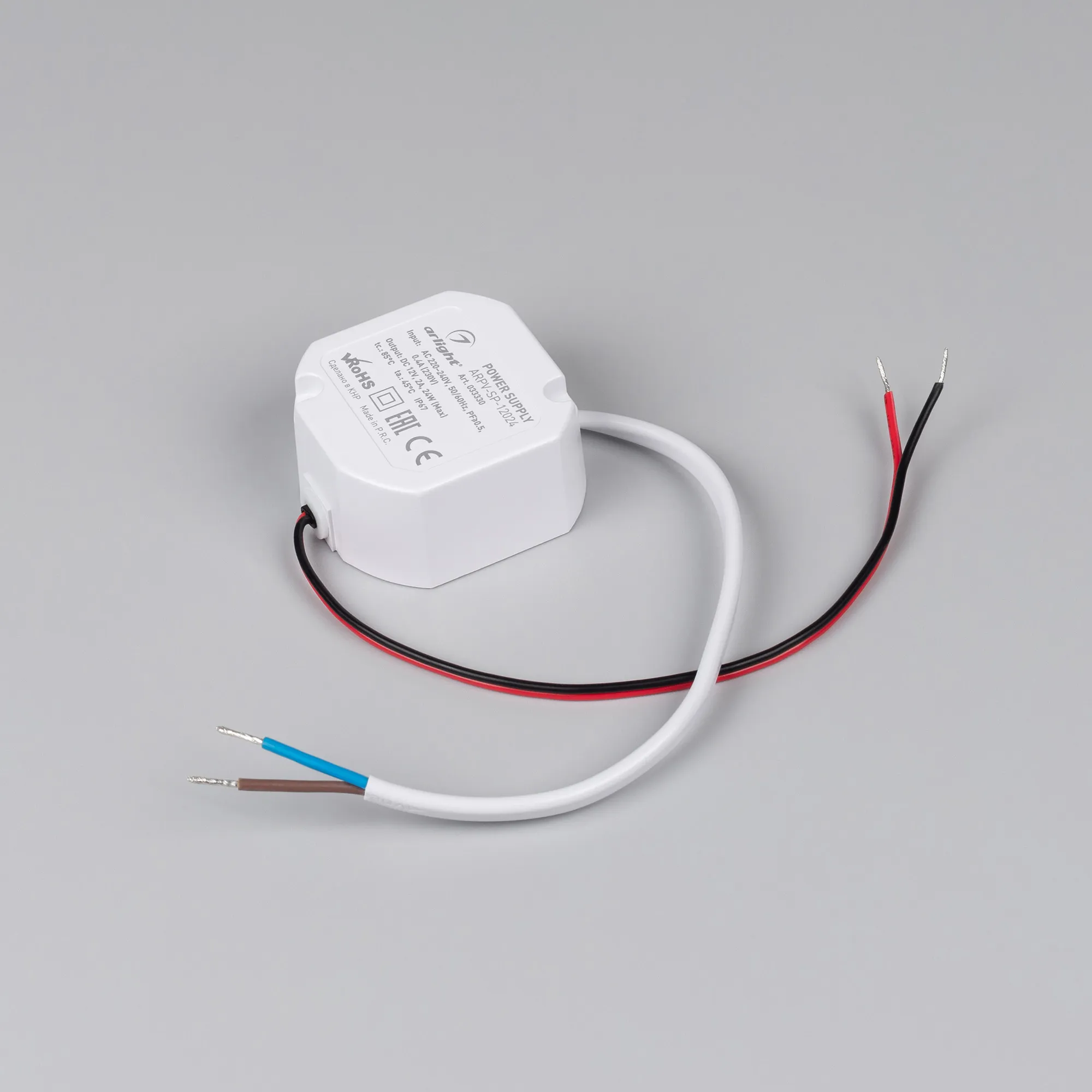 Источник напряжения с гальванической развязкой для светодиодных изделий. Входное напряжение 220-240 VAC. Выходные параметры: 12 В, 2 А, 24 Вт. Герметичный пластиковый корпус IP 67. Рабочая температура -20…+45C⁰. Габаритные размеры длина 50 мм, ширина 50 мм, высота 25 мм. Гарантийный срок 5 лет.